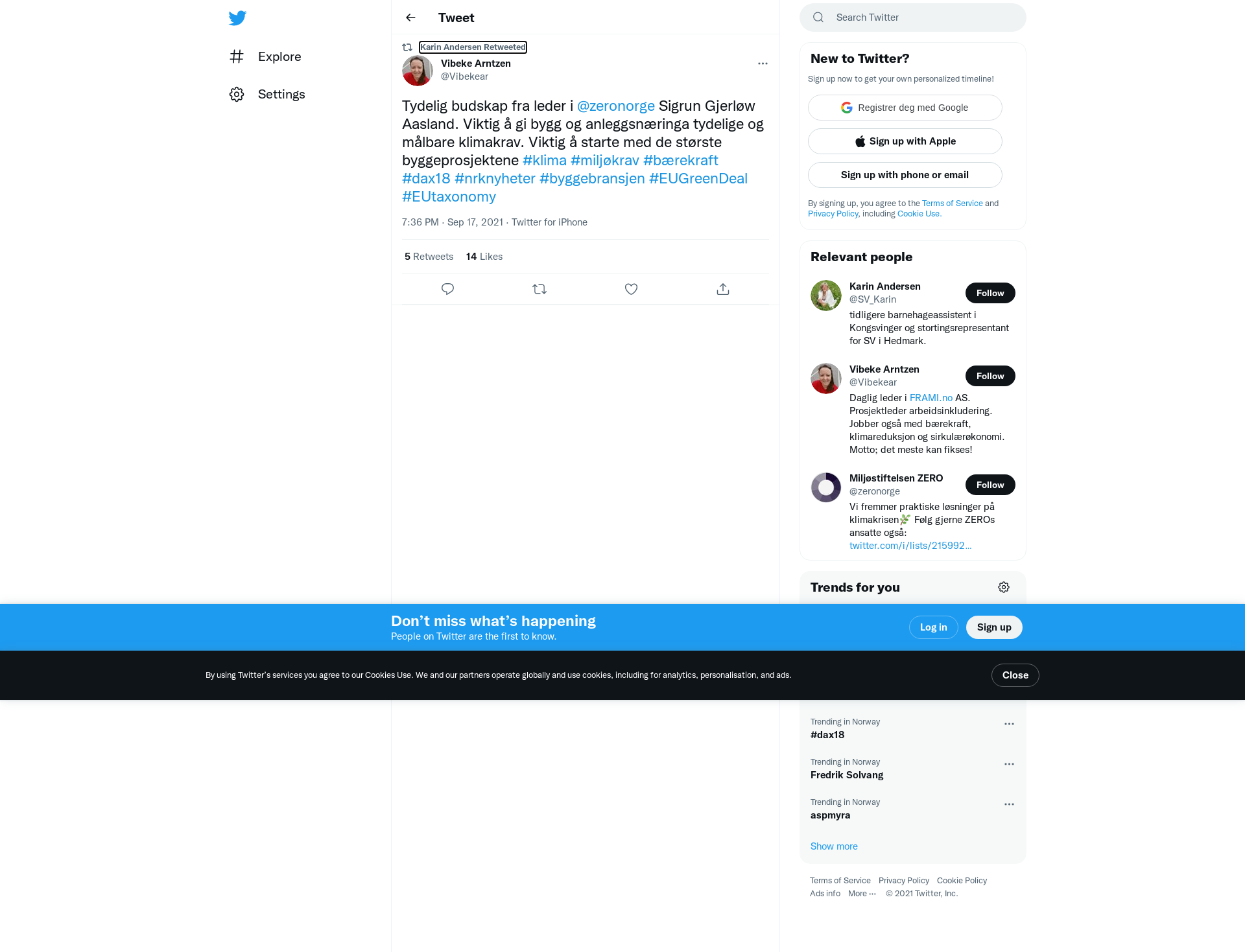 RT @Vibekear: Tydelig budskap fra leder i @zeronorge Sigrun Gjerløw Aasland. Viktig å gi bygg og anleggsnæringa tydelige og målbare klimakrav. Viktig å starte med de største byggeprosjektene #klima #miljøkrav #bærekraft #dax18 #nrknyheter #byggebransjen #EUGreenDeal #EUtaxonomy