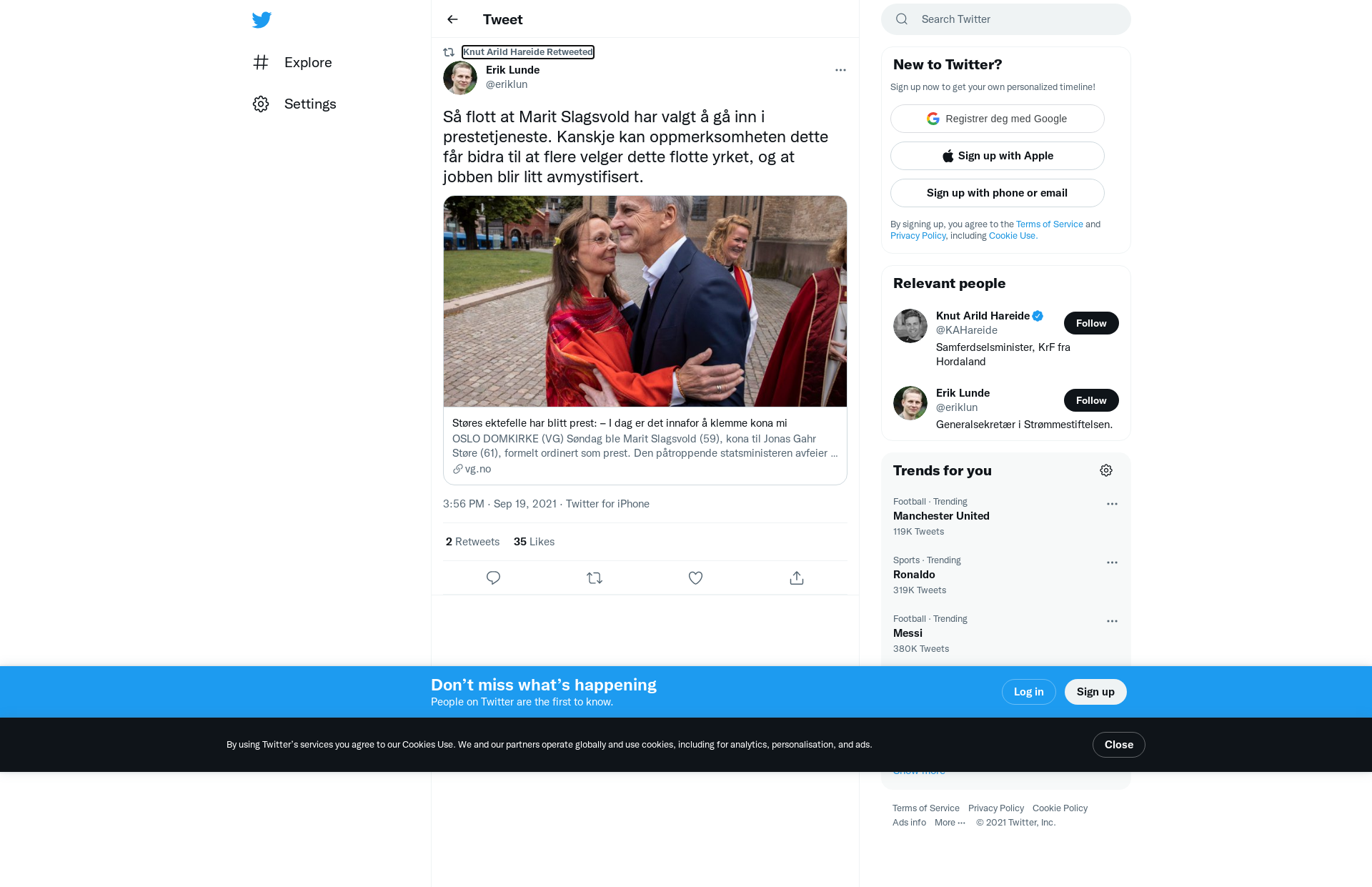 RT @eriklun: Så flott at Marit Slagsvold har valgt å gå inn i prestetjeneste. Kanskje kan oppmerksomheten dette får bidra til at flere velger dette flotte yrket, og at jobben blir litt avmystifisert. https://t.co/7jKn4ZJgzi