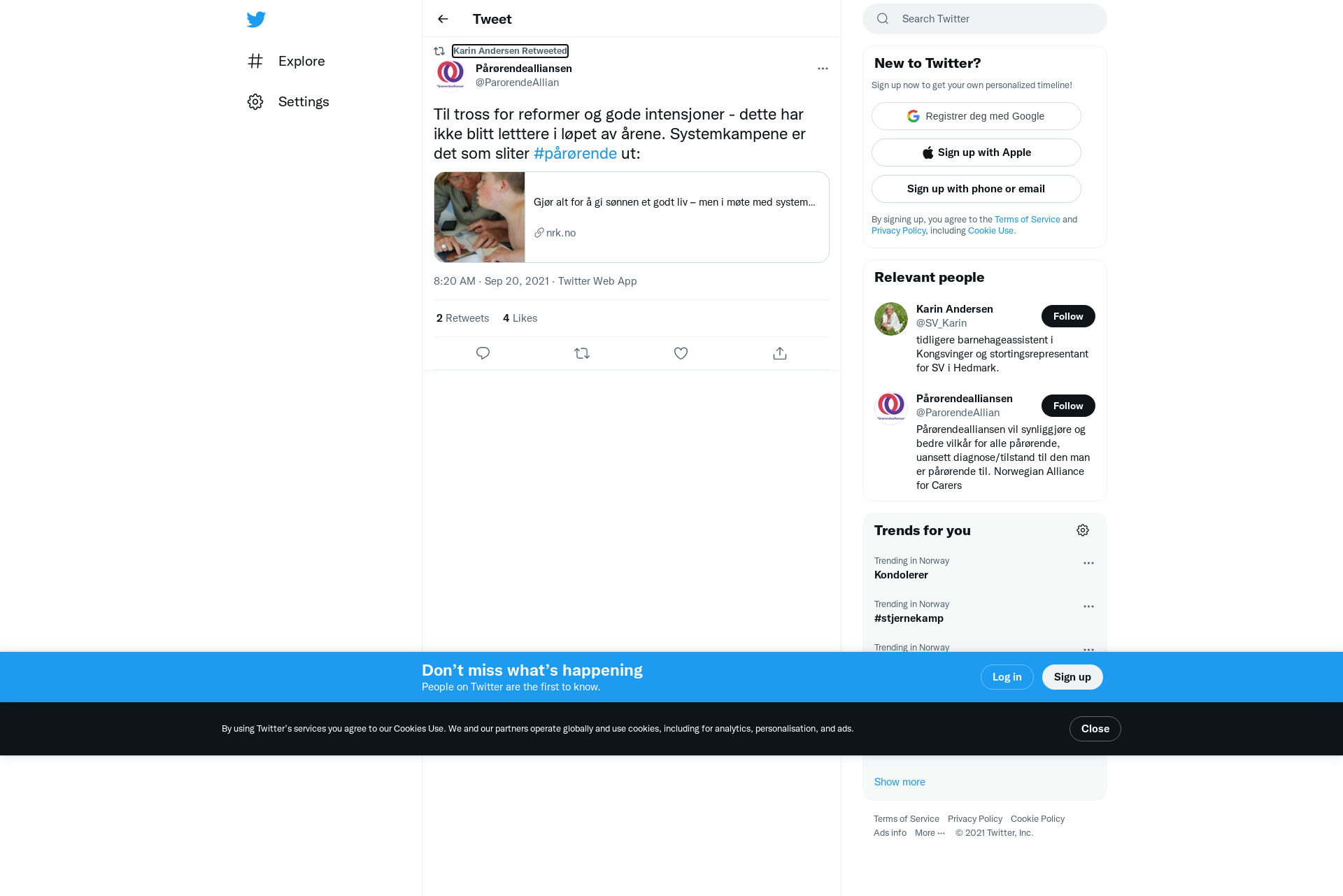RT @ParorendeAllian: Til tross for reformer og gode intensjoner - dette har ikke blitt letttere i løpet av årene. Systemkampene er det som sliter #pårørende ut: https://t.co/A6NQK1yuwF