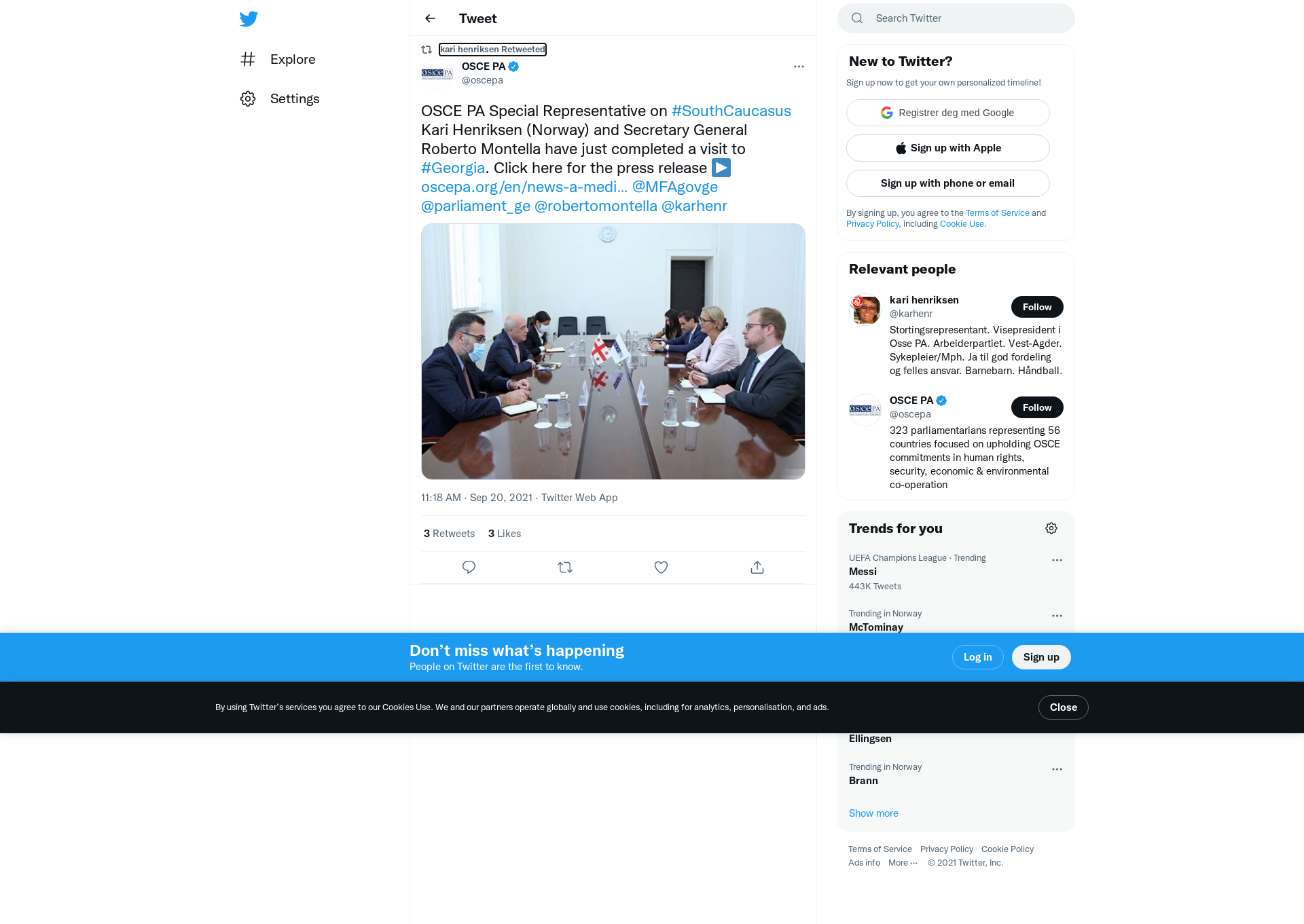 RT @oscepa: OSCE PA Special Representative on #SouthCaucasus Kari Henriksen (Norway) and Secretary General Roberto Montella have just completed a visit to #Georgia. Click here for the press release ▶️ https://t.co/7dyZapfpIn @MFAgovge @parliament_ge @robertomontella @karhenr https://t.co/0r2nW0wLcL