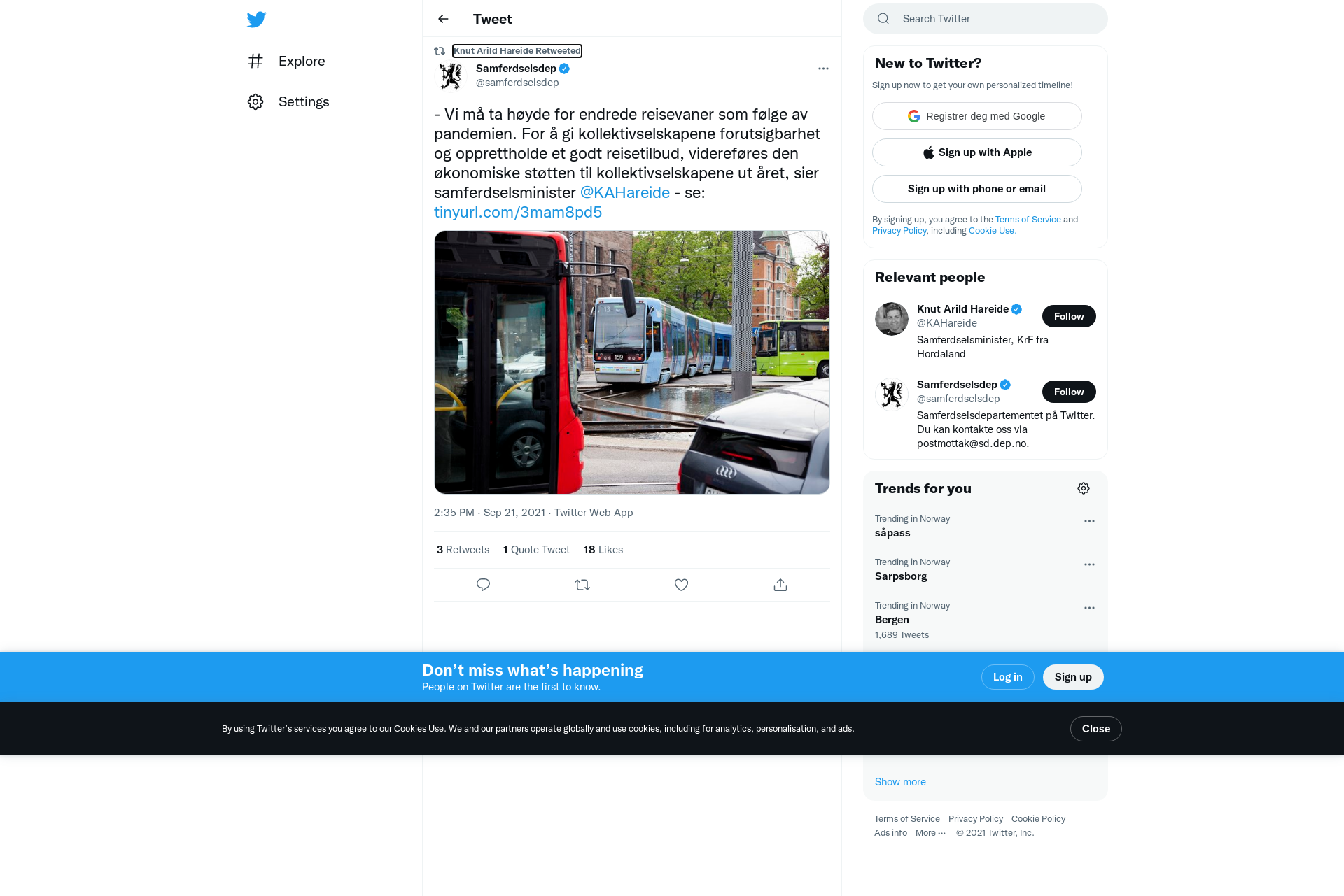 RT @samferdselsdep: - Vi må ta høyde for endrede reisevaner som følge av pandemien. For å gi kollektivselskapene forutsigbarhet og opprettholde et godt reisetilbud, videreføres den økonomiske støtten til kollektivselskapene ut året, sier samferdselsminister @KAHareide - se: https://t.co/sPYiih6x2y https://t.co/K1AQbaGPgX