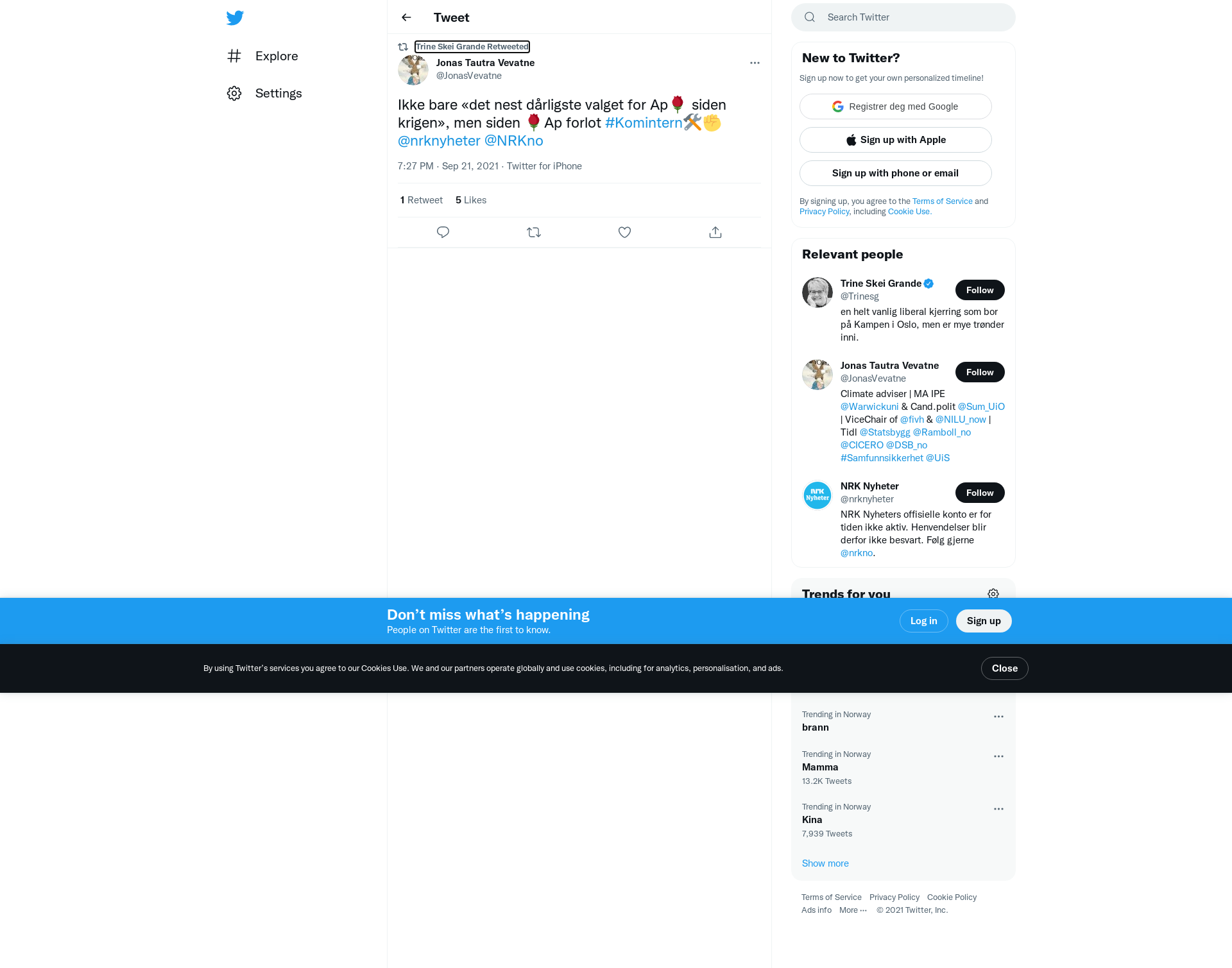 RT @JonasVevatne: Ikke bare «det nest dårligste valget for Ap🌹 siden krigen», men siden 🌹Ap forlot #Komintern🛠✊ @nrknyheter @NRKno