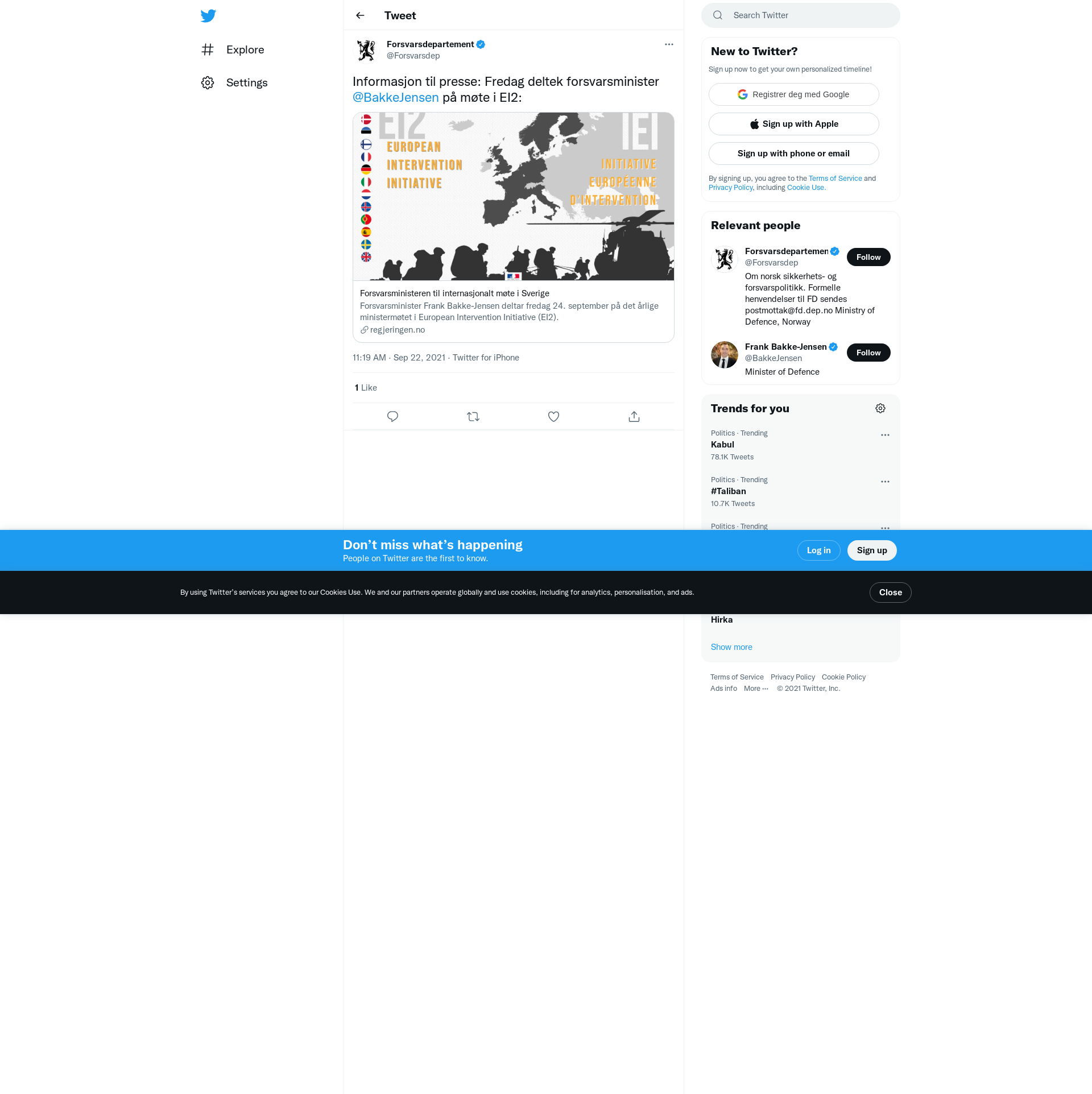 Informasjon til presse: Fredag deltek forsvarsminister @BakkeJensen på møte i EI2: https://t.co/SWMM6marca