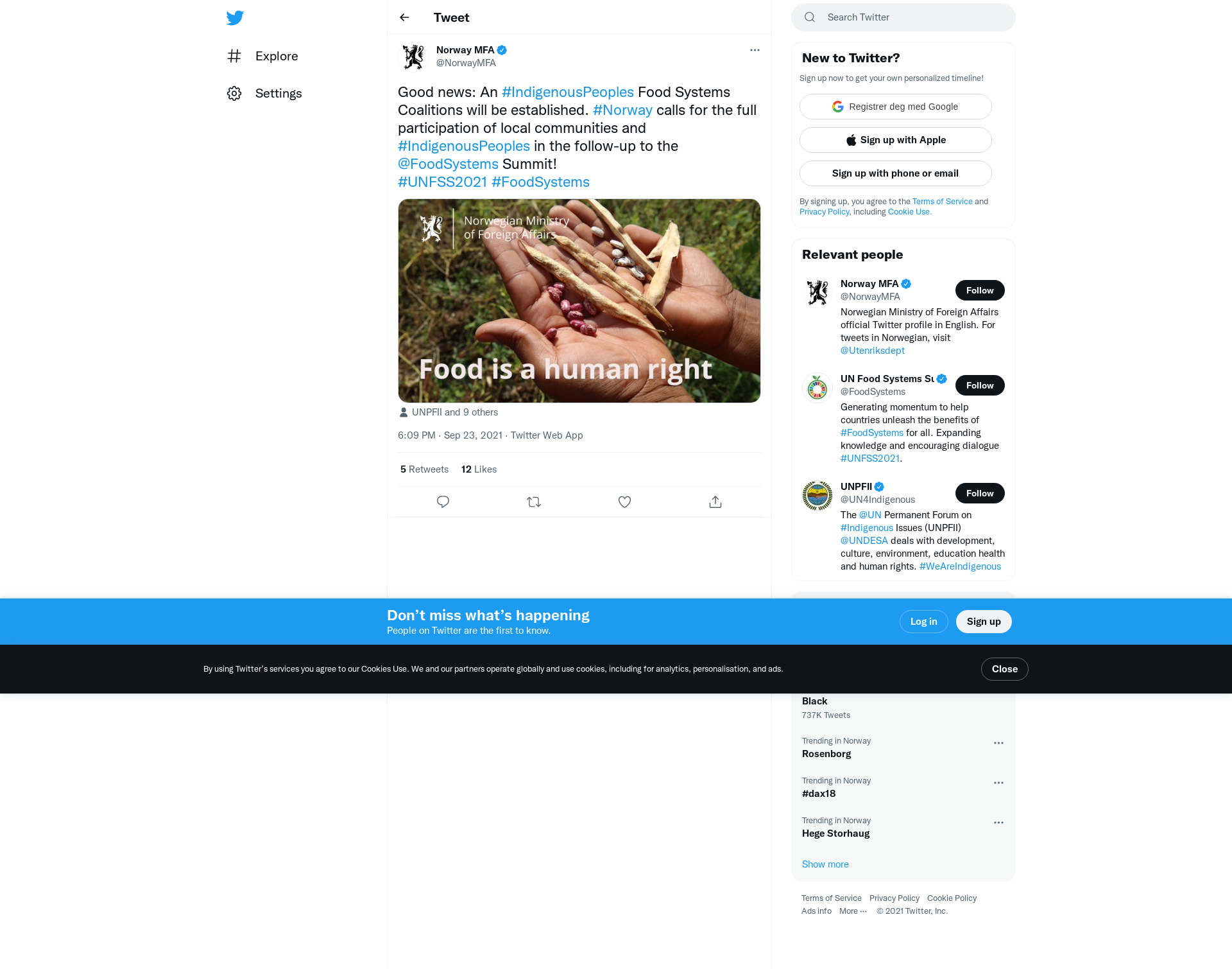 Good news: An #IndigenousPeoples Food Systems Coalitions will be established. #Norway calls for the full participation of local communities and #IndigenousPeoples in the follow-up to the @FoodSystems Summit!