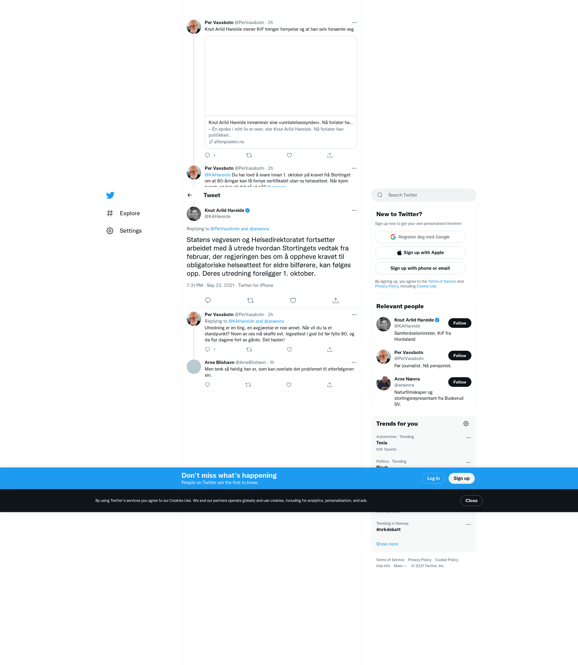 @PerVassbotn @anaevra Statens vegvesen og Helsedirektoratet fortsetter arbeidet med å utrede hvordan Stortingets vedtak fra februar, der regjeringen bes om å oppheve kravet til obligatoriske helseattest for eldre bilførere, kan følges opp. Deres utredning foreligger 1. oktober.