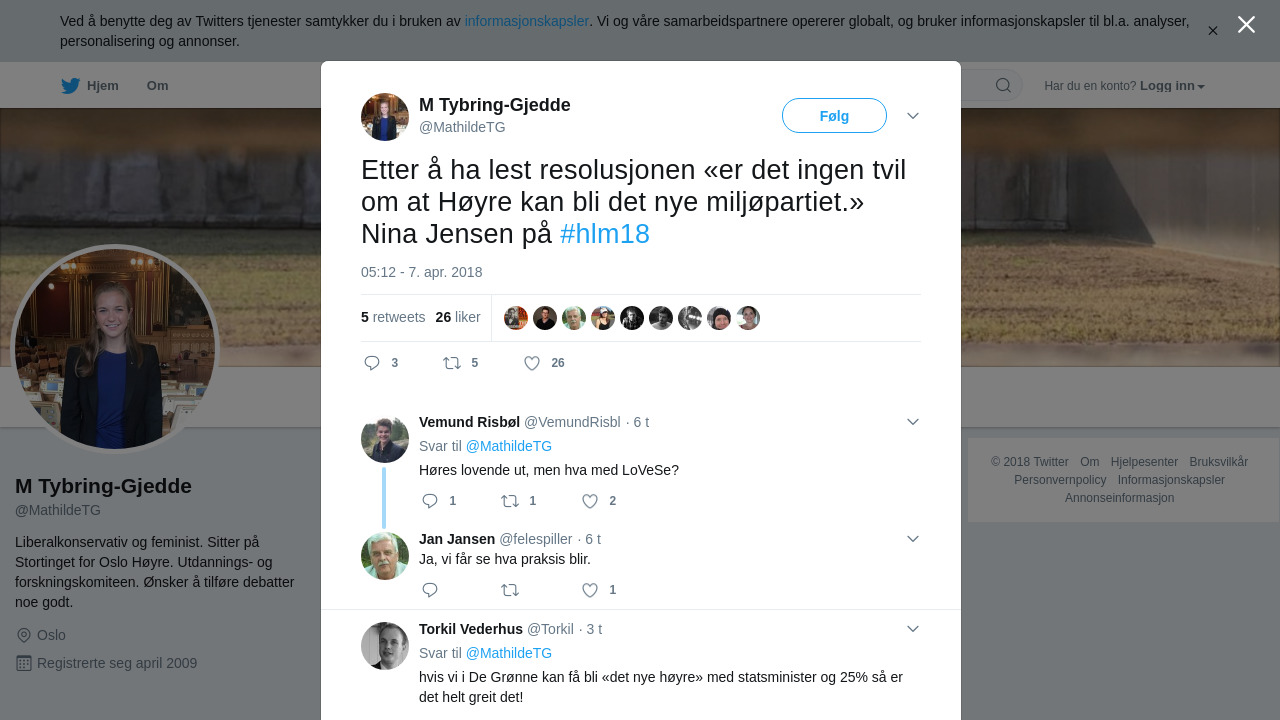 RT @MathildeTG: Etter å ha lest resolusjonen «er det ingen tvil om at Høyre kan bli det nye miljøpartiet.» Nina Jensen på #hlm18