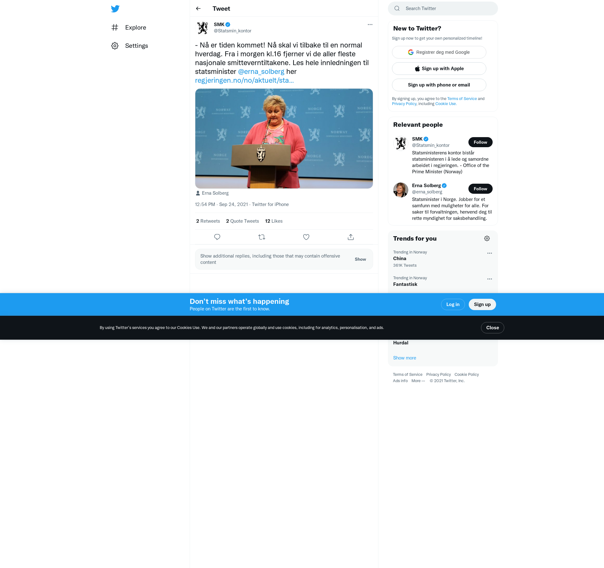 Kjære alle sammen I dag er det 561 dager siden vi innførte de strengeste tiltakene i fredstid. 561 dager med tiltak som har begrenset våre liv på måter jeg tror ingen hadde forestilt seg på forhånd. 561 dager med dugnad for å holde pandemien under kont...