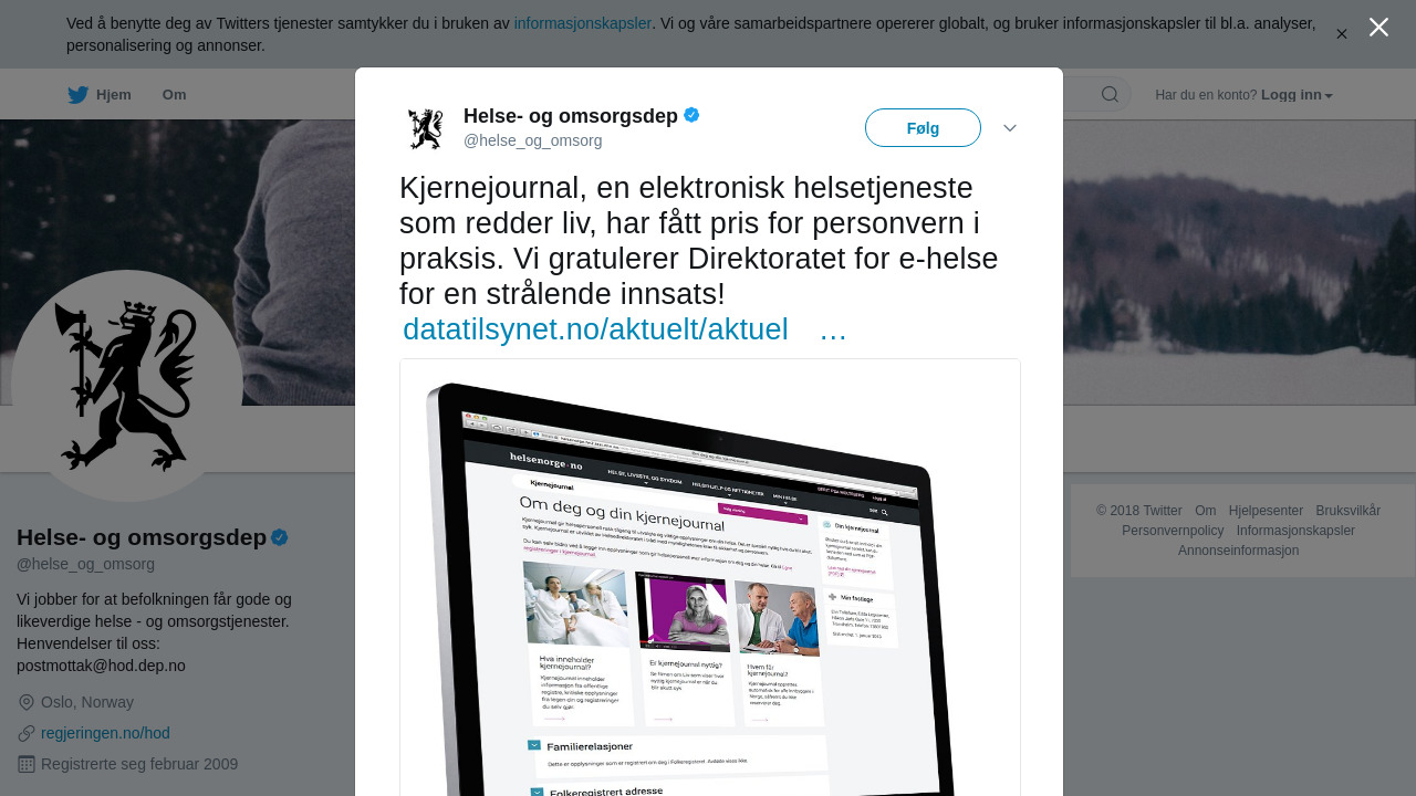 RT @helse_og_omsorg: Kjernejournal, en elektronisk helsetjeneste som redder liv, har fått pris for personvern i praksis. Vi gratulerer D… https://t.co/i8hj6FoY6S