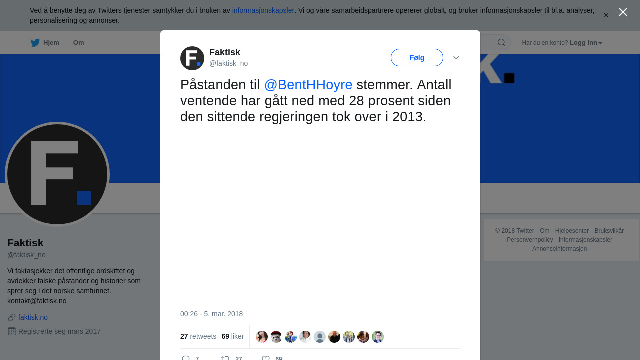 RT @faktisk_no: Påstanden til @BentHHoyre stemmer. Antall ventende har gått ned med 28 prosent siden den sittende regjeringen tok o… https://t.co/WXofg5Ubsp