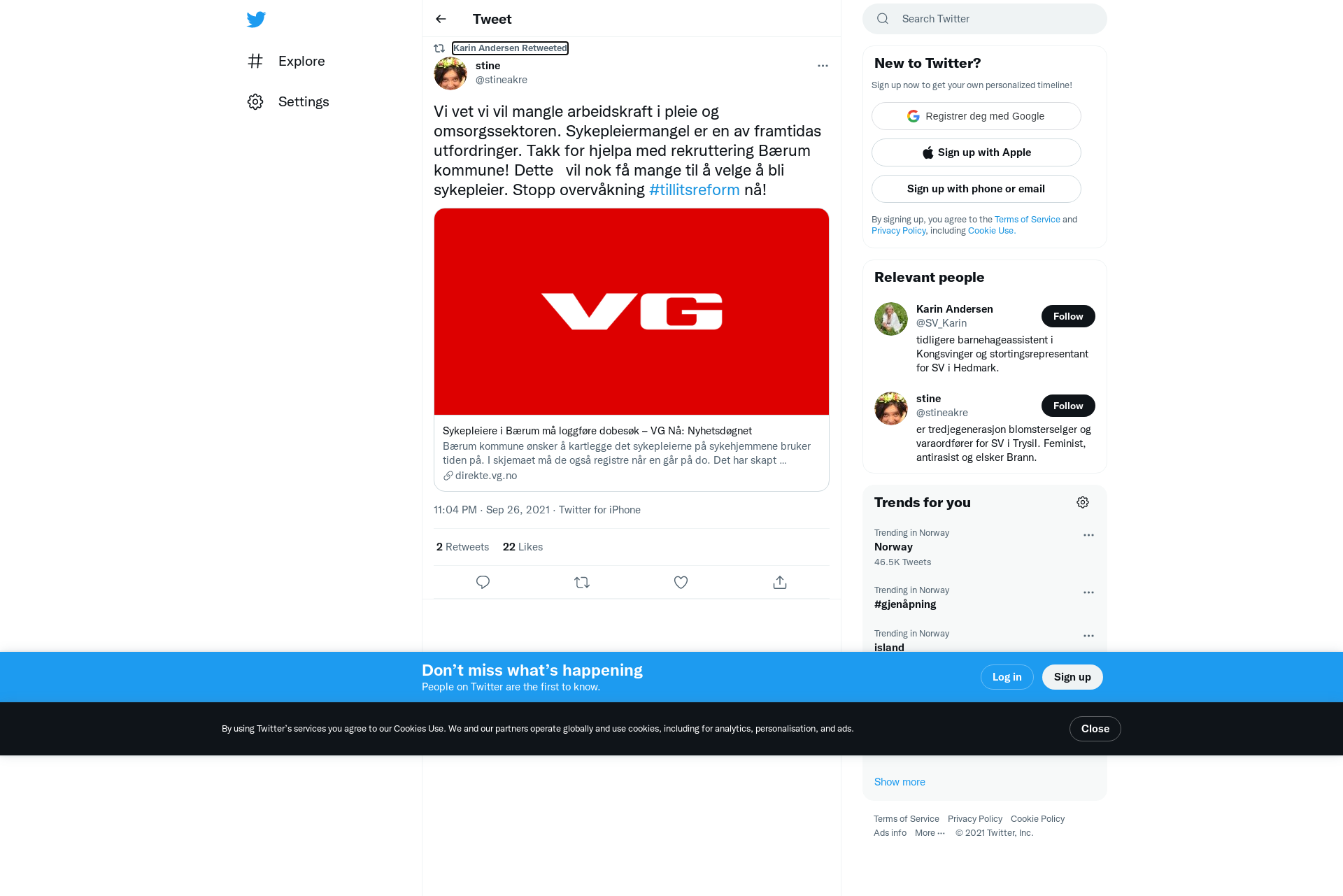 RT @stineakre: Vi vet vi vil mangle arbeidskraft i pleie og omsorgssektoren. Sykepleiermangel er en av framtidas utfordringer. Takk for hjelpa med rekruttering Bærum kommune! Dette vil nok få mange til å velge å bli sykepleier. Stopp overvåkning #tillitsreform nå! https://t.co/gYW8EhtU1p