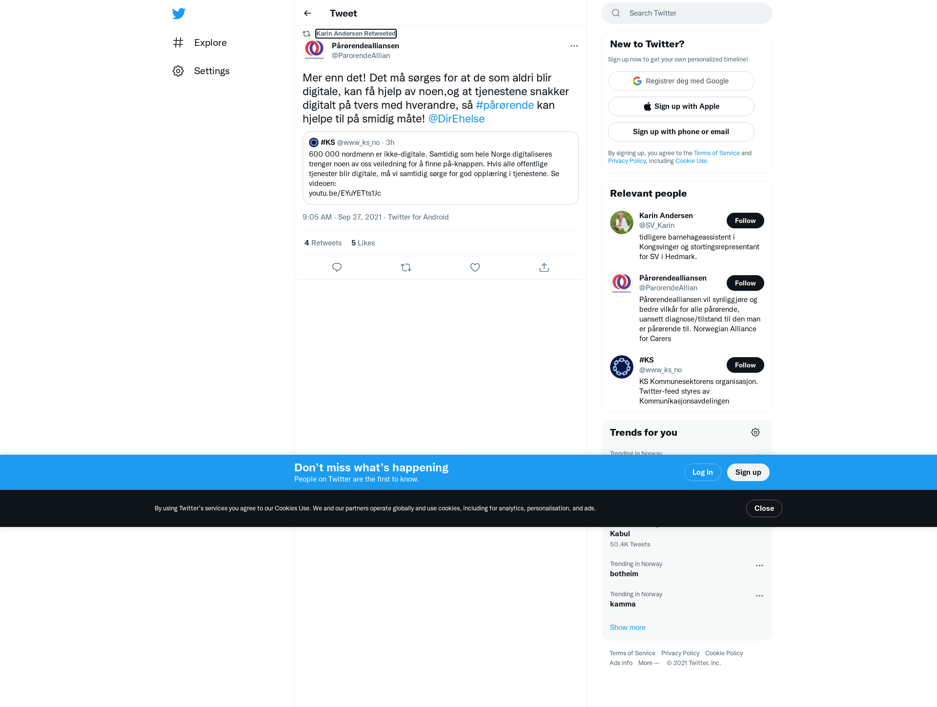 RT @ParorendeAllian: Mer enn det! Det må sørges for at de som aldri blir digitale, kan få hjelp av noen,og at tjenestene snakker digitalt på tvers med hverandre, så #pårørende kan hjelpe til på smidig måte! @DirEhelse