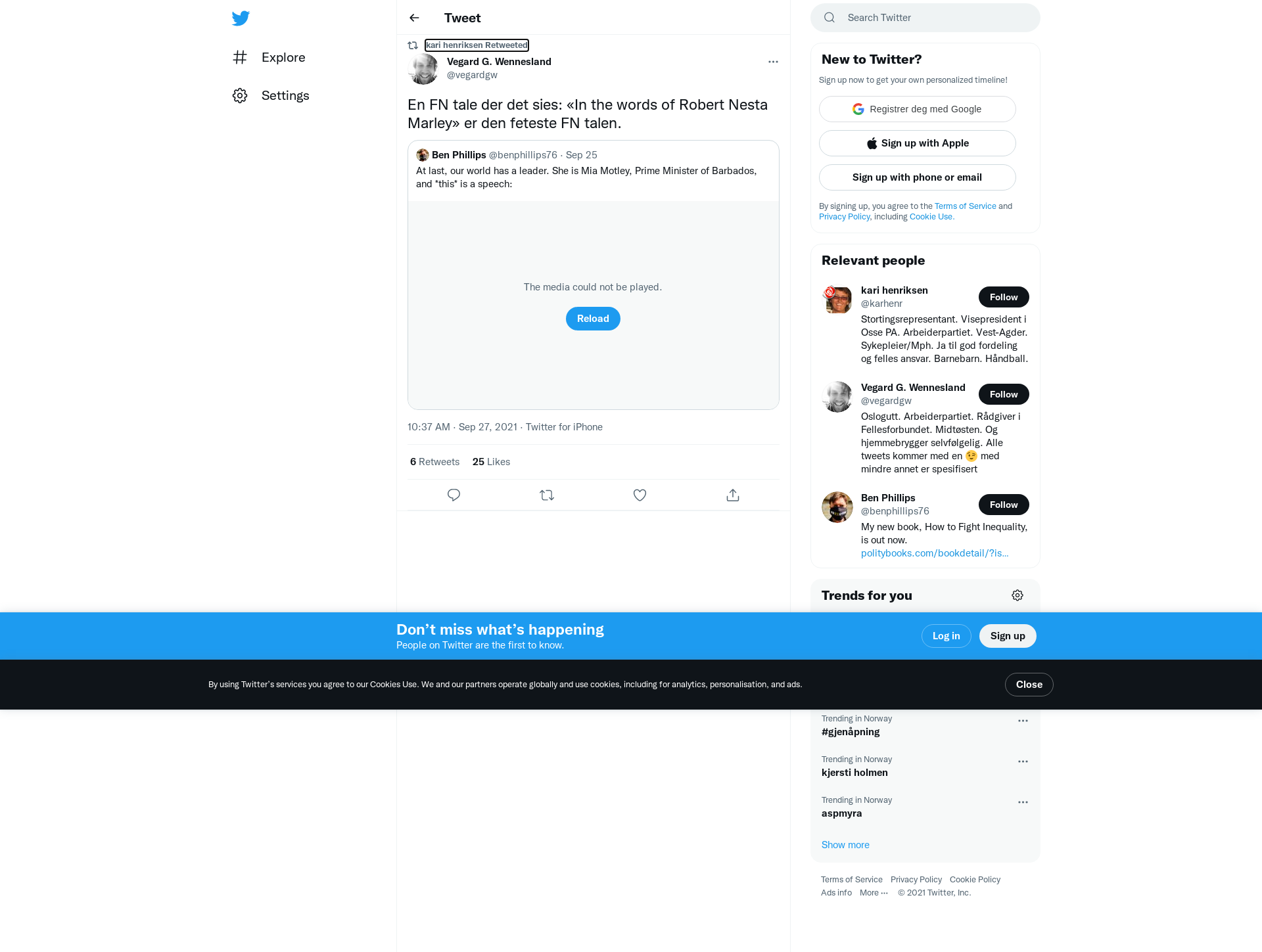 RT @vegardgw: En FN tale der det sies: «In the words of Robert Nesta Marley» er den feteste FN talen.