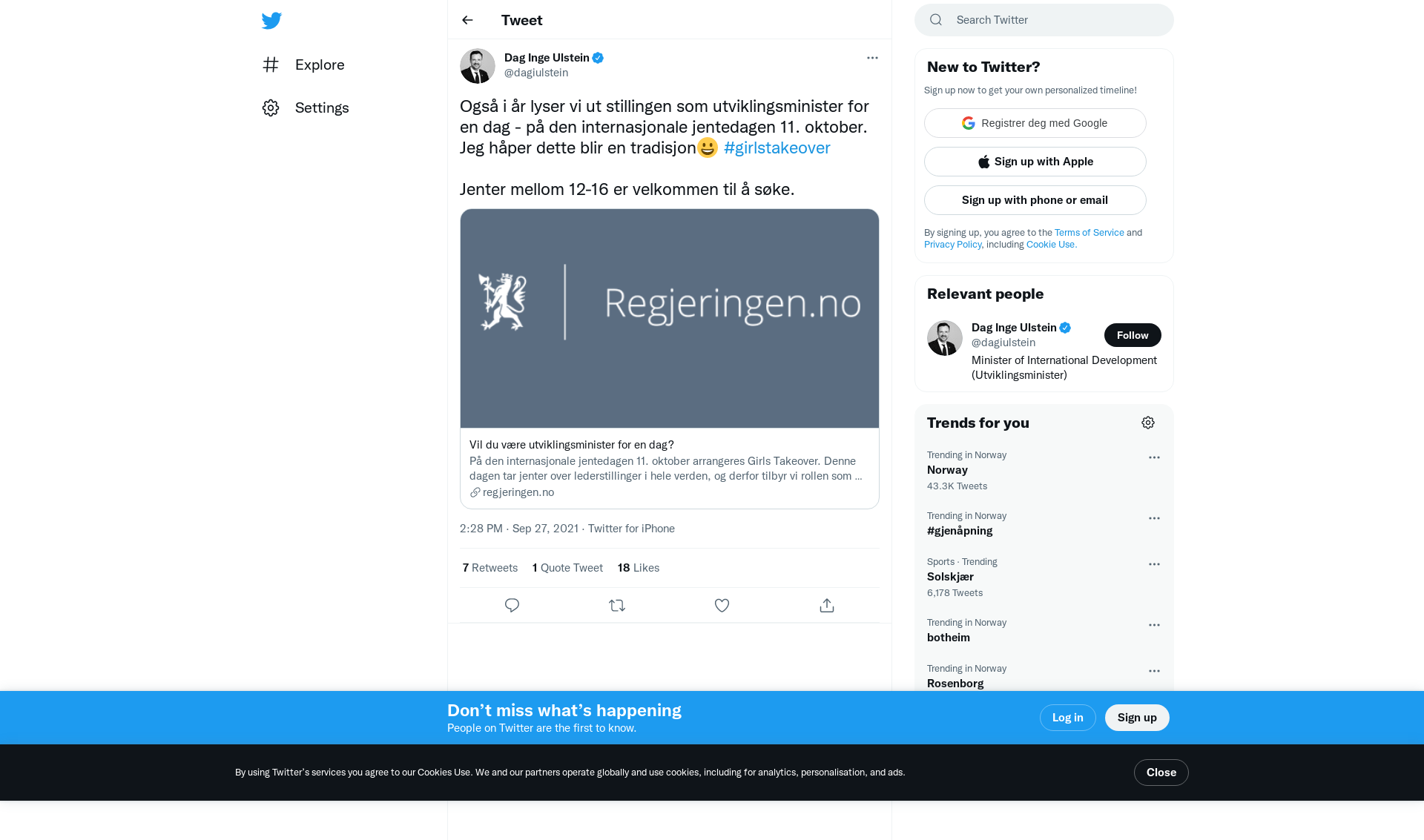 Også i år lyser vi ut stillingen som utviklingsminister for en dag - på den internasjonale jentedagen 11. oktober. Jeg håper dette blir en tradisjon😀 #girlstakeover
