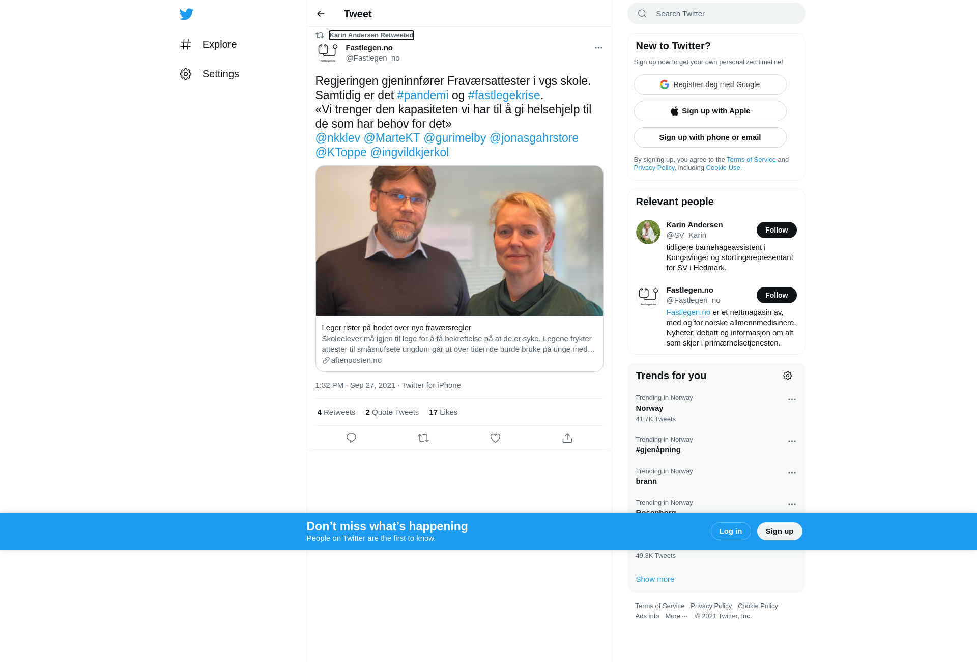 RT @Fastlegen_no: Regjeringen gjeninnfører Fraværsattester i vgs skole. Samtidig er det #pandemi og #fastlegekrise. «Vi trenger den kapasi…