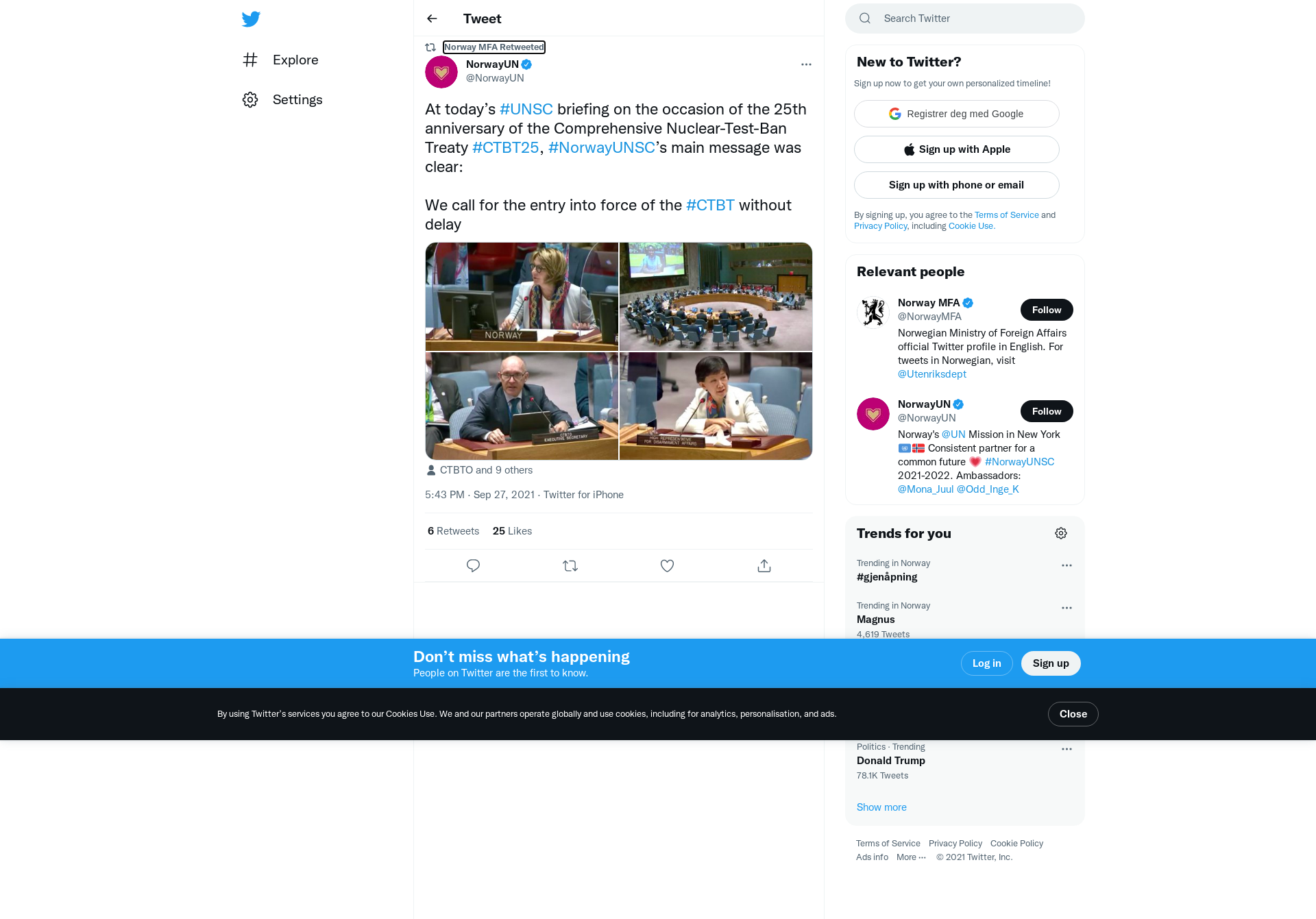 RT @NorwayUN: At today’s #UNSC briefing on the occasion of the 25th anniversary of the Comprehensive Nuclear-Test-Ban Treaty #CTBT25, #NorwayUNSC’s main message was clear: