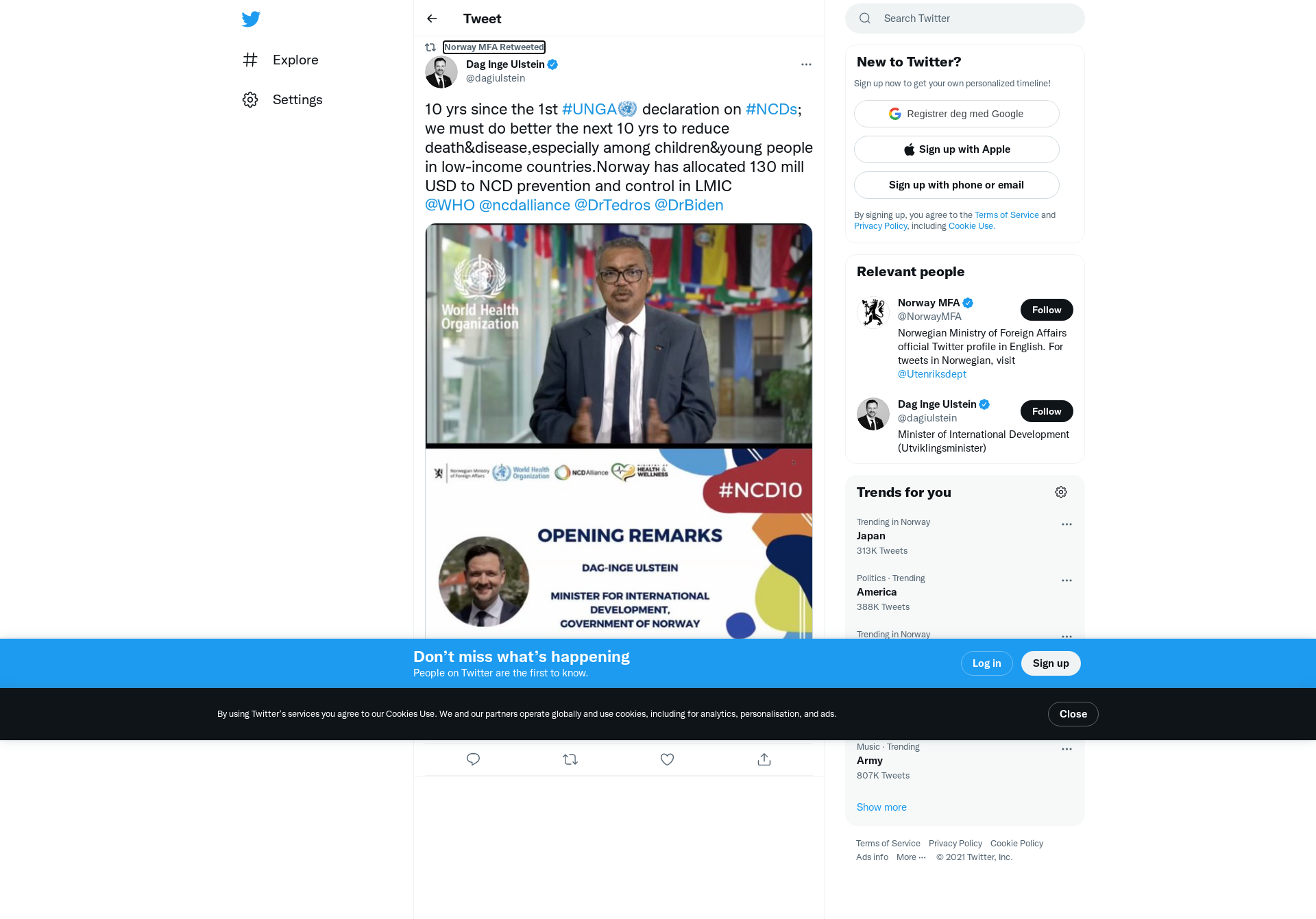RT @dagiulstein: 10 yrs since the 1st #UNGA declaration on #NCDs; we must do better the next 10 yrs to reduce death&disease,especially among children&young people in low-income countries.Norway has allocated 130 mill USD to NCD prevention and control in LMIC