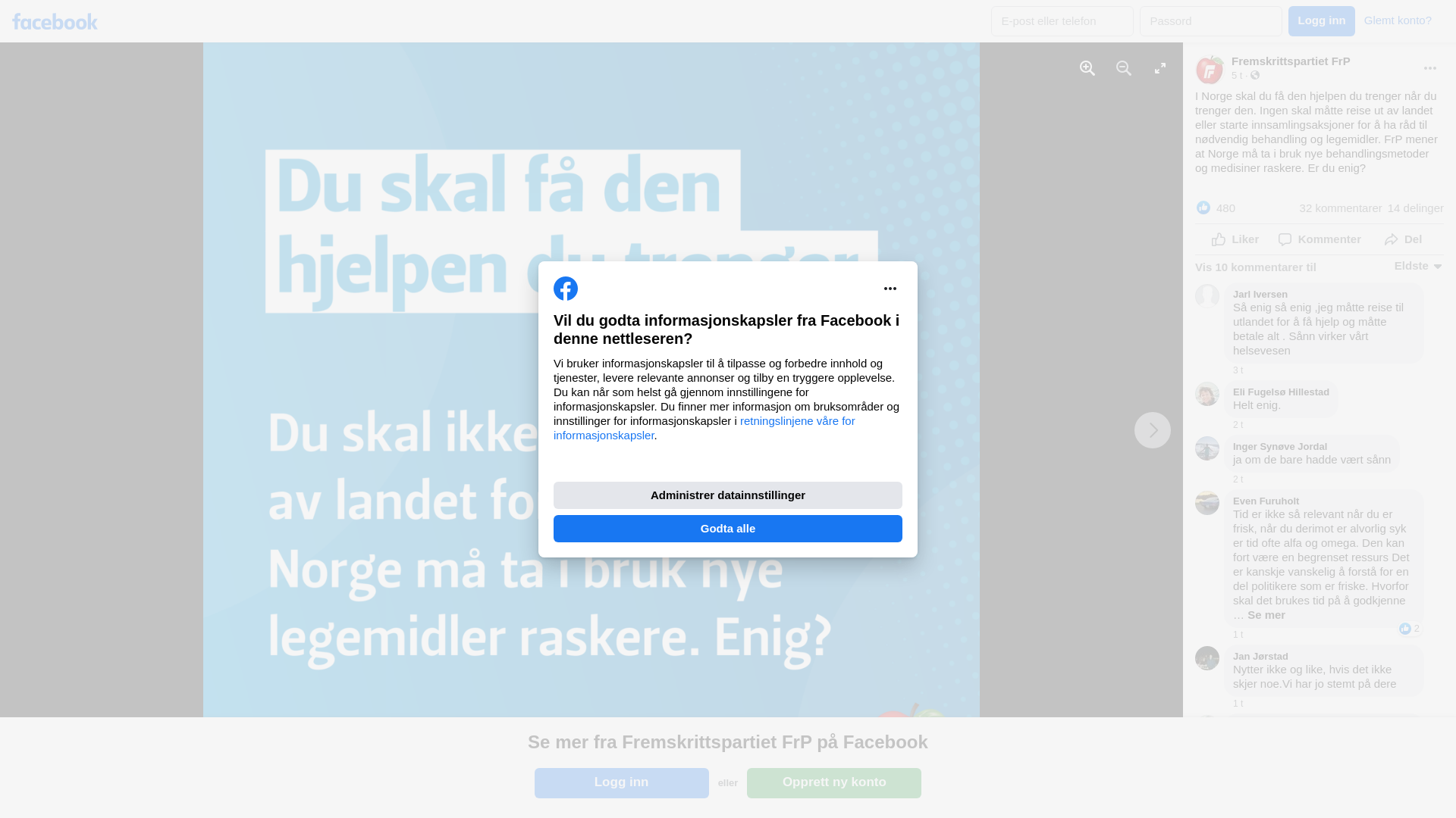 I Norge skal du få den hjelpen du trenger når du trenger den. Ingen skal måtte reise ut av landet eller starte innsamlingsaksjoner for å ha råd til nødvendig behandling og legemidler. FrP mener at Norge må ta i bruk nye behandlingsmetoder og medisiner raskere. Er du enig?