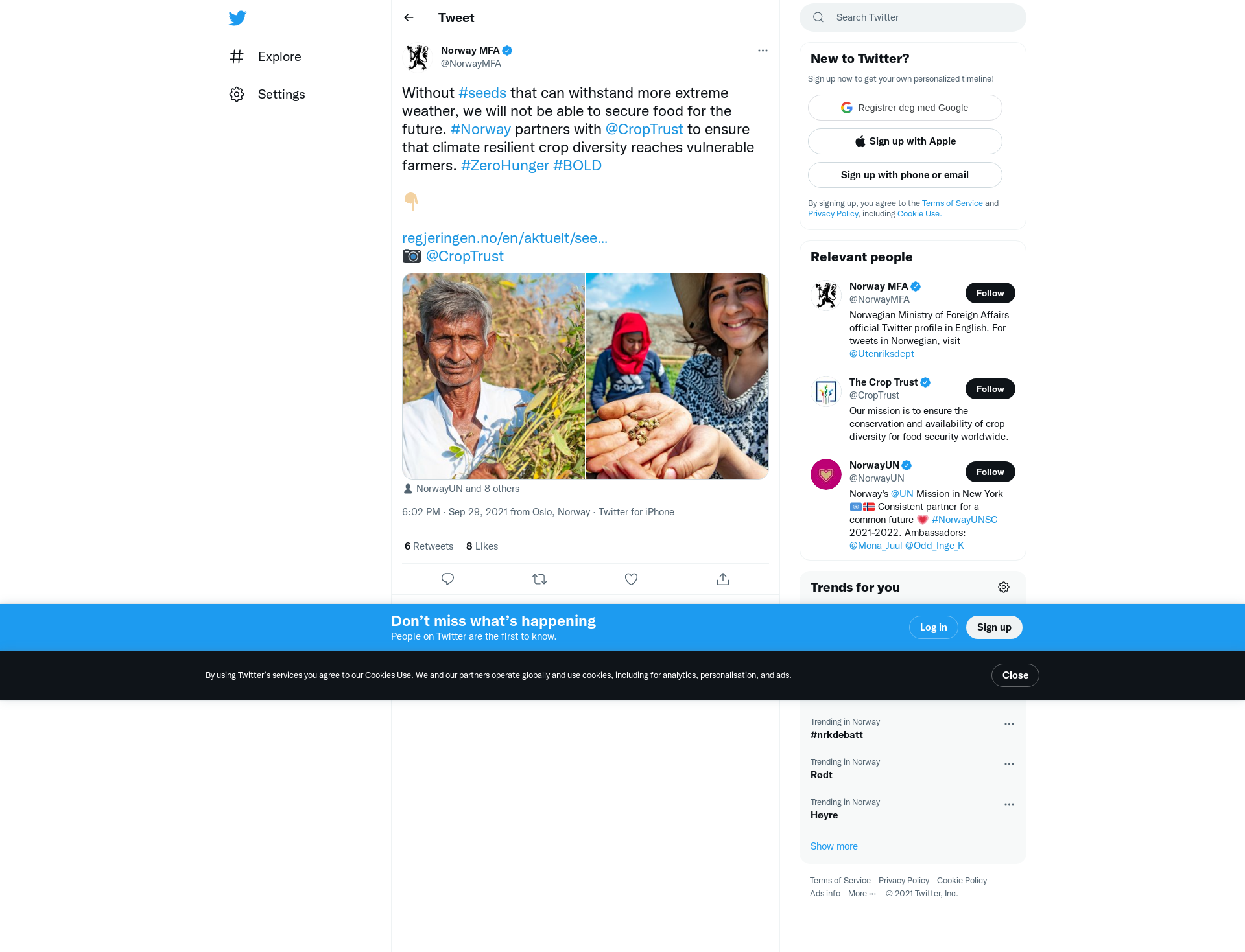 ‘We are in the midst of a food crisis, and flooding, drought and heatwaves are exacerbating the situation all across the world. Norway has now entered into a ten-year agreement with the Global Crop Diversity Trust to help to improve food security and p...