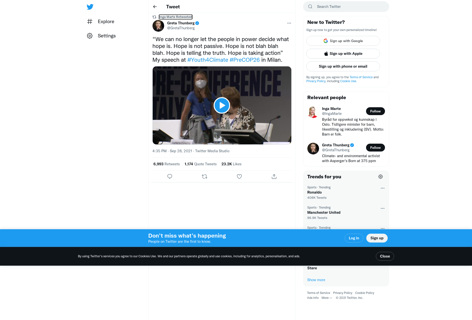 My speech at #Youth4Climate #PreCOP26 in Milan. https://t.co/BA62GpST2O