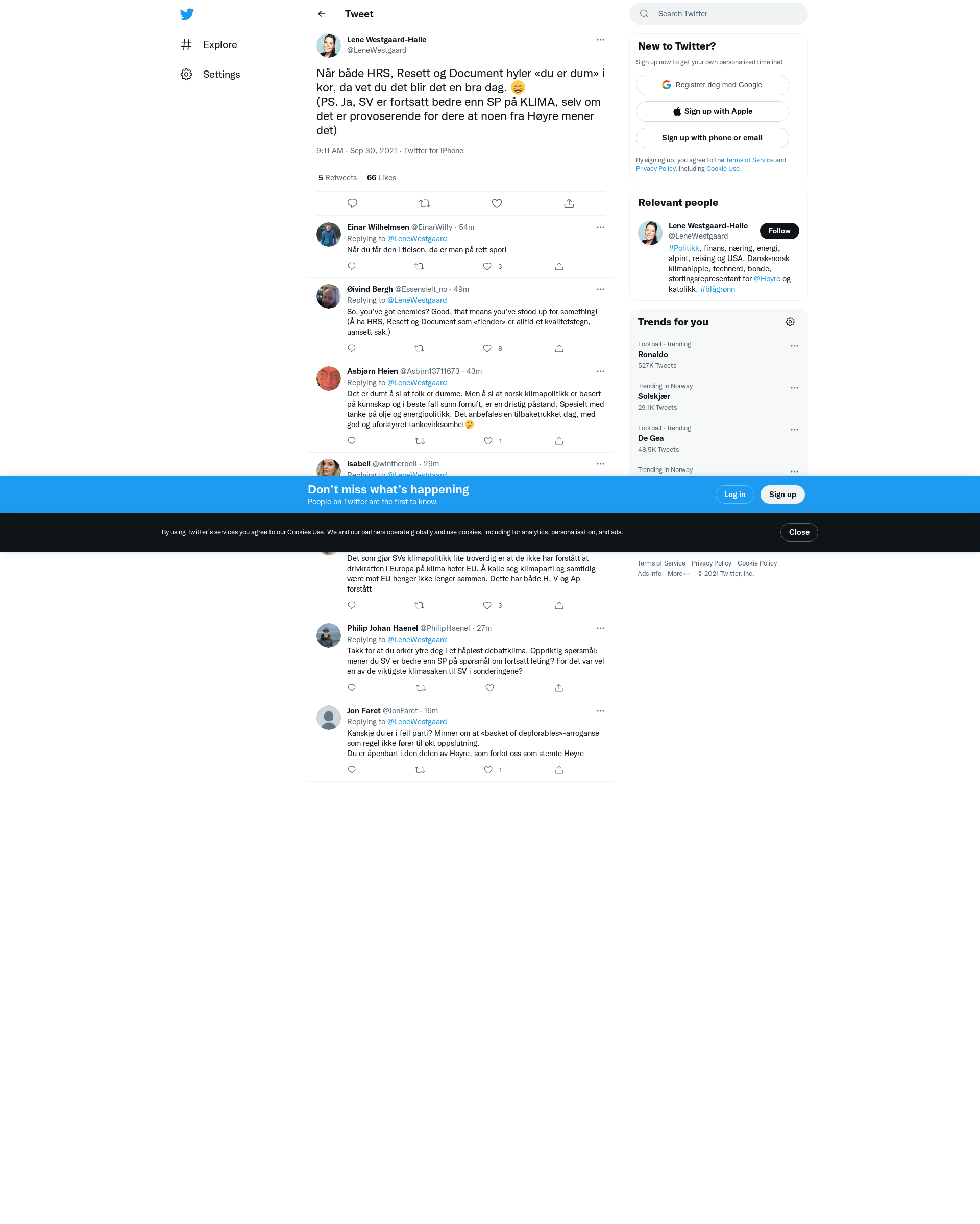 Når både HRS, Resett og Document hyler «du er dum» i kor, da vet du det blir det en bra dag. 😁 (PS. Ja, SV er fortsatt bedre enn SP på KLIMA, selv om det er provoserende for dere at noen fra Høyre mener det)