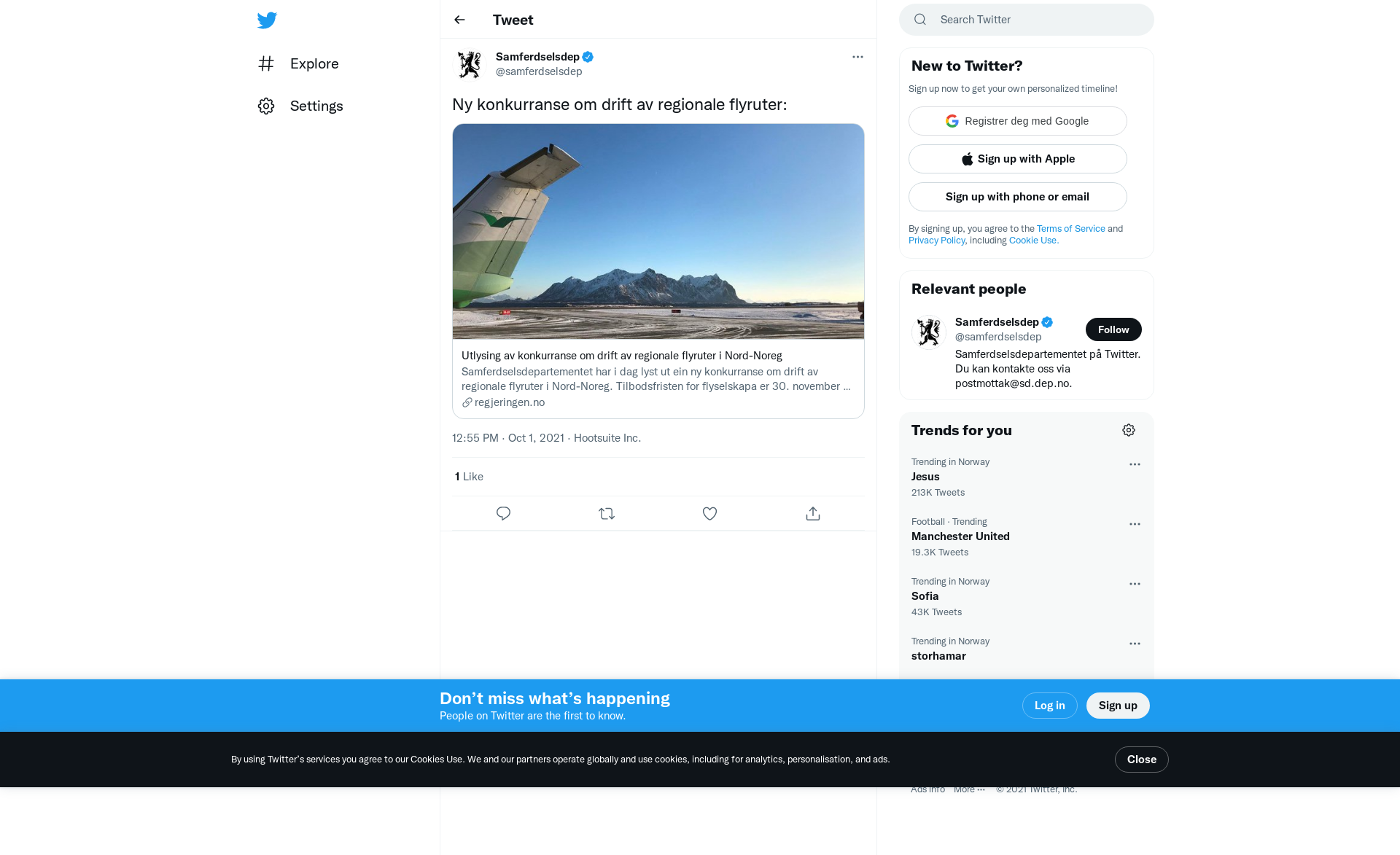 samferdselsdep på Twitter