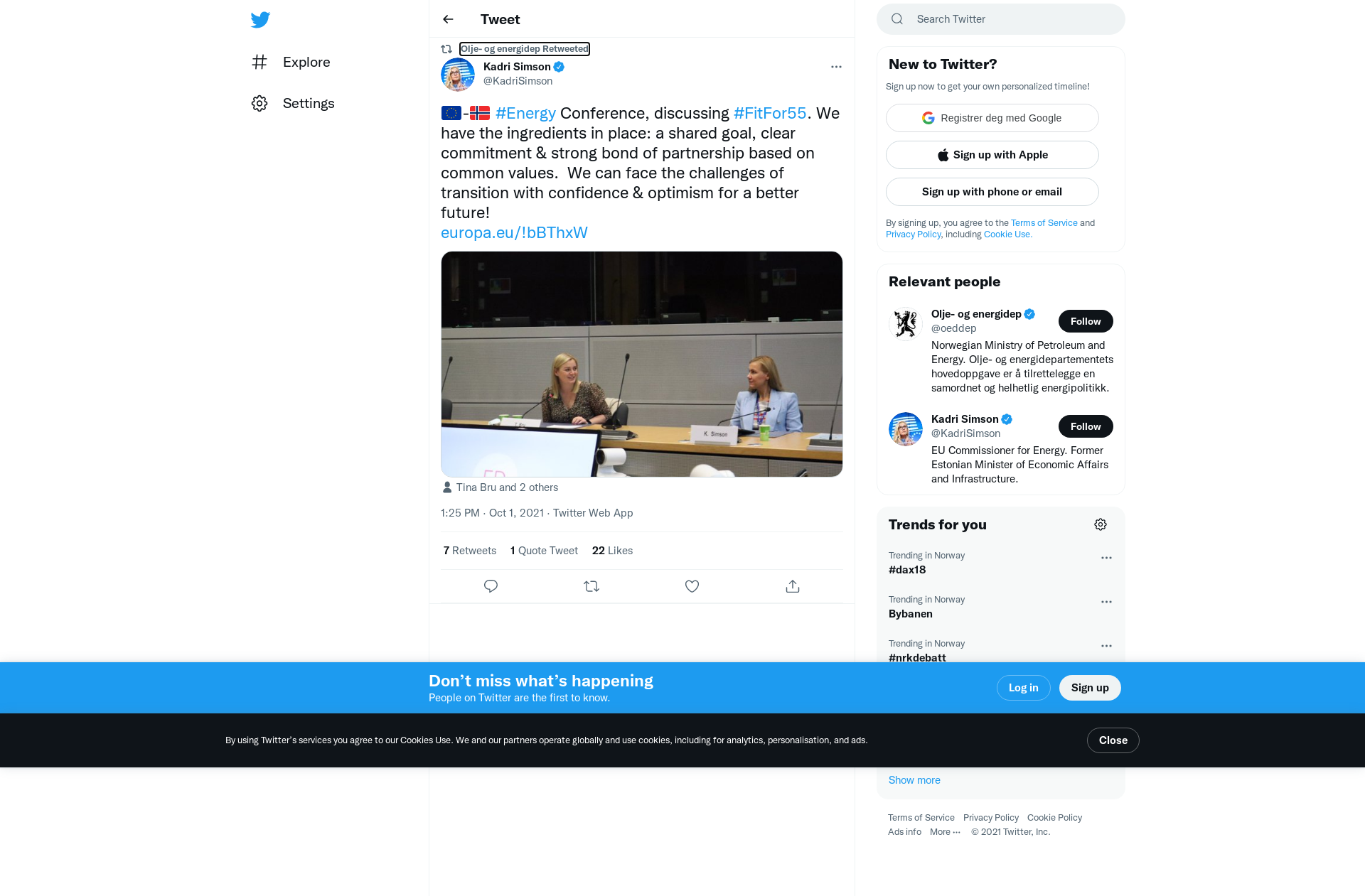 RT @KadriSimson: 🇪🇺-🇳🇴 #Energy Conference, discussing #FitFor55. We have the ingredients in place: a shared goal, clear commitment & strong bond of partnership based on common values. We can face the challenges of transition with confidence & optimism for a better future!