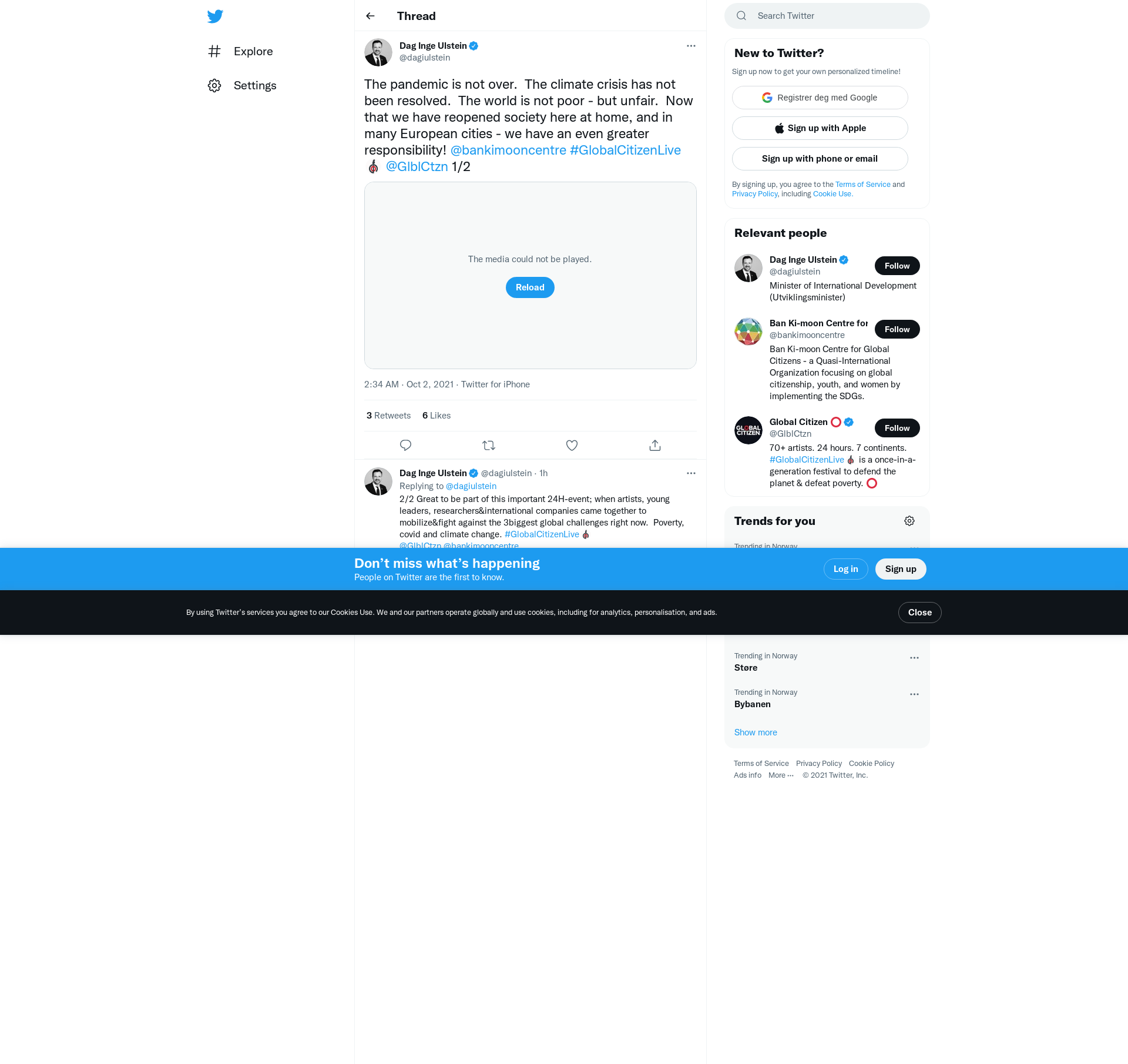 The pandemic is not over. The climate crisis has not been resolved. The world is not poor - but unfair. Now that we have reopened society here at home, and in many European cities - we have an even greater responsibility! @bankimooncentre #GlobalCitizenLive @GlblCtzn 1/2 https://t.co/MMoy4XJ1BU
