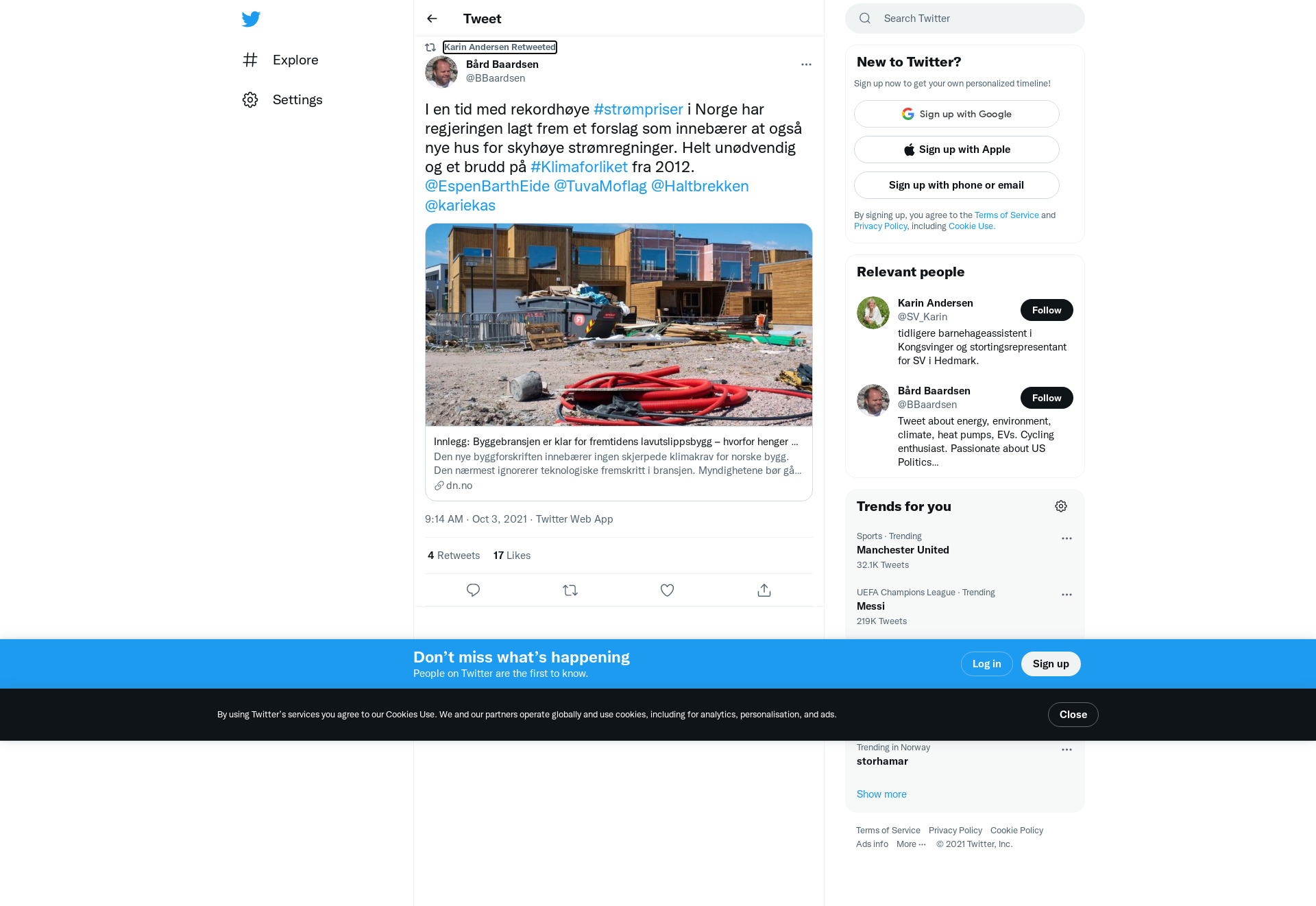 RT @BBaardsen: I en tid med rekordhøye #strømpriser i Norge har regjeringen lagt frem et forslag som innebærer at også nye hus for skyhøye strømregninger. Helt unødvendig og et brudd på #Klimaforliket fra 2012. @EspenBarthEide @TuvaMoflag @Haltbrekken @kariekas