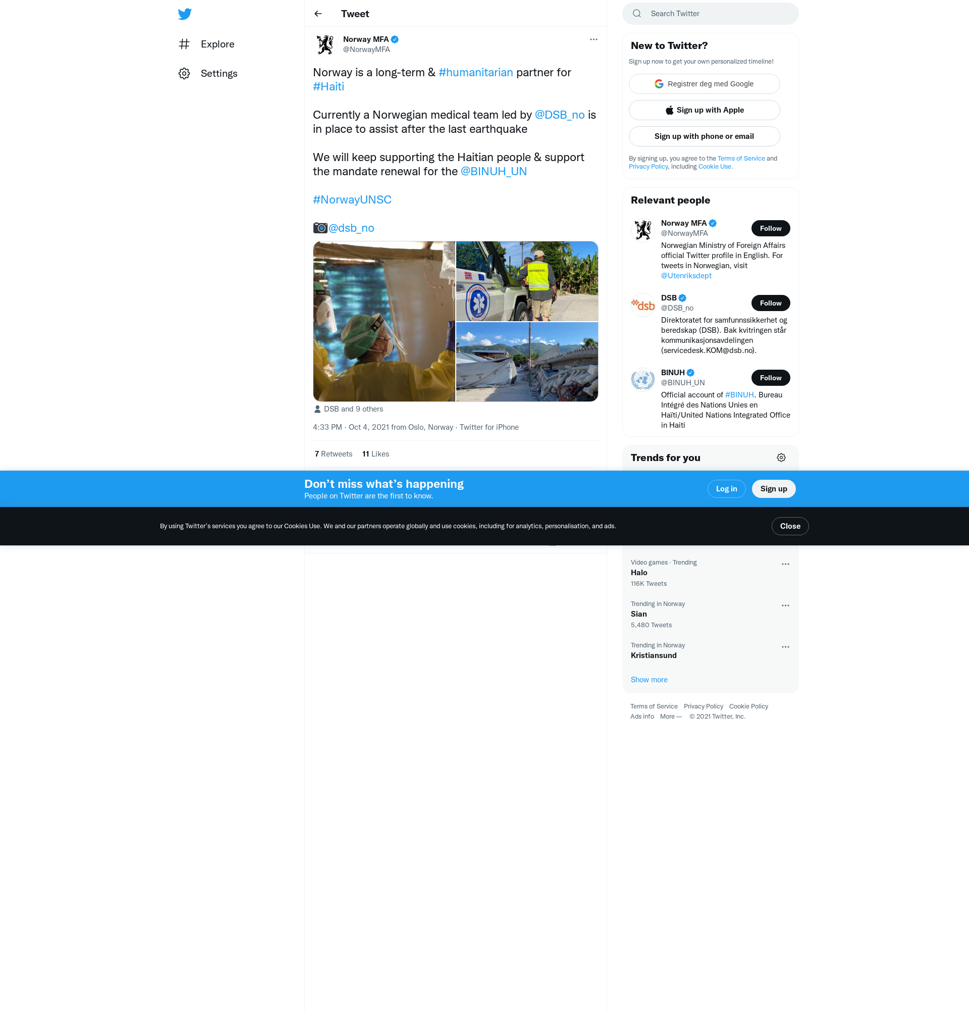 Currently a Norwegian medical team led by @DSB_no is in place to assist after the last earthquake