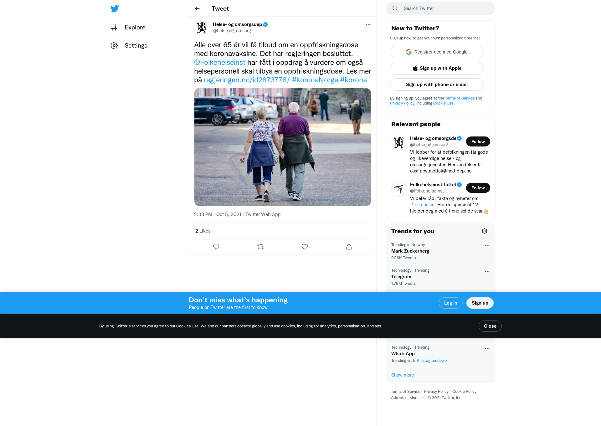 Alle over 65 år vil få tilbud om en oppfriskningsdose med koronavaksine. Det har regjeringen besluttet. Folkehelseinstituttet (FHI) har fått i oppdrag å vurdere om også helsepersonell skal tilbys en oppfriskningsdose.