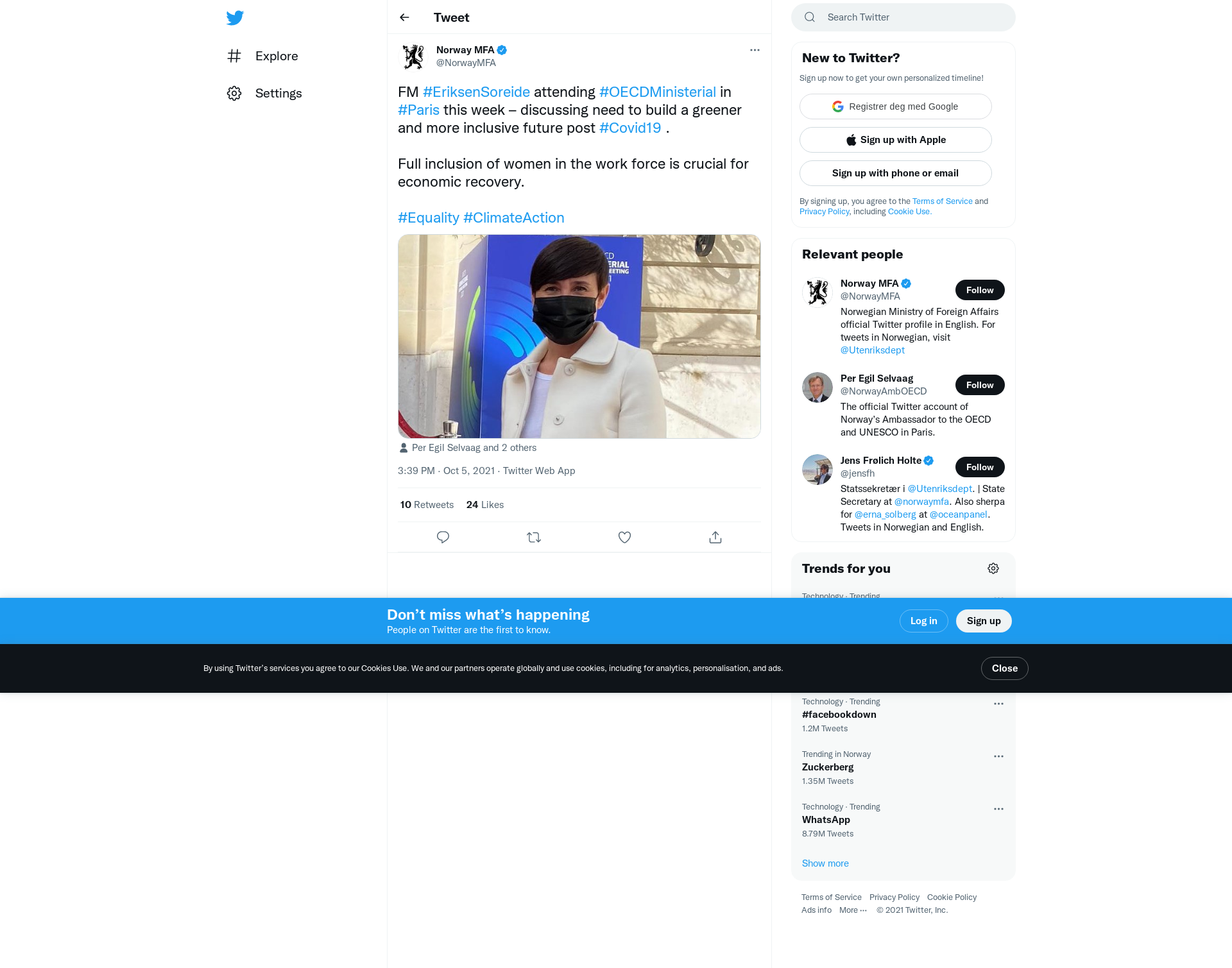FM #EriksenSoreide attending #OECDMinisterial in #Paris this week – discussing need to build a greener and more inclusive future post #Covid19 .