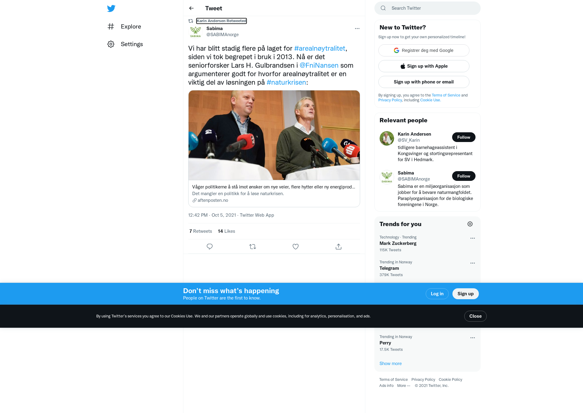 RT @SABIMAnorge: Vi har blitt stadig flere på laget for #arealnøytralitet, siden vi tok begrepet i bruk i 2013. Nå er det seniorforsker Lars H. Gulbrandsen i @FniNansen som argumenterer godt for hvorfor arealnøytralitet er en viktig del av løsningen på #naturkrisen: https://t.co/TGxKmcy7J4