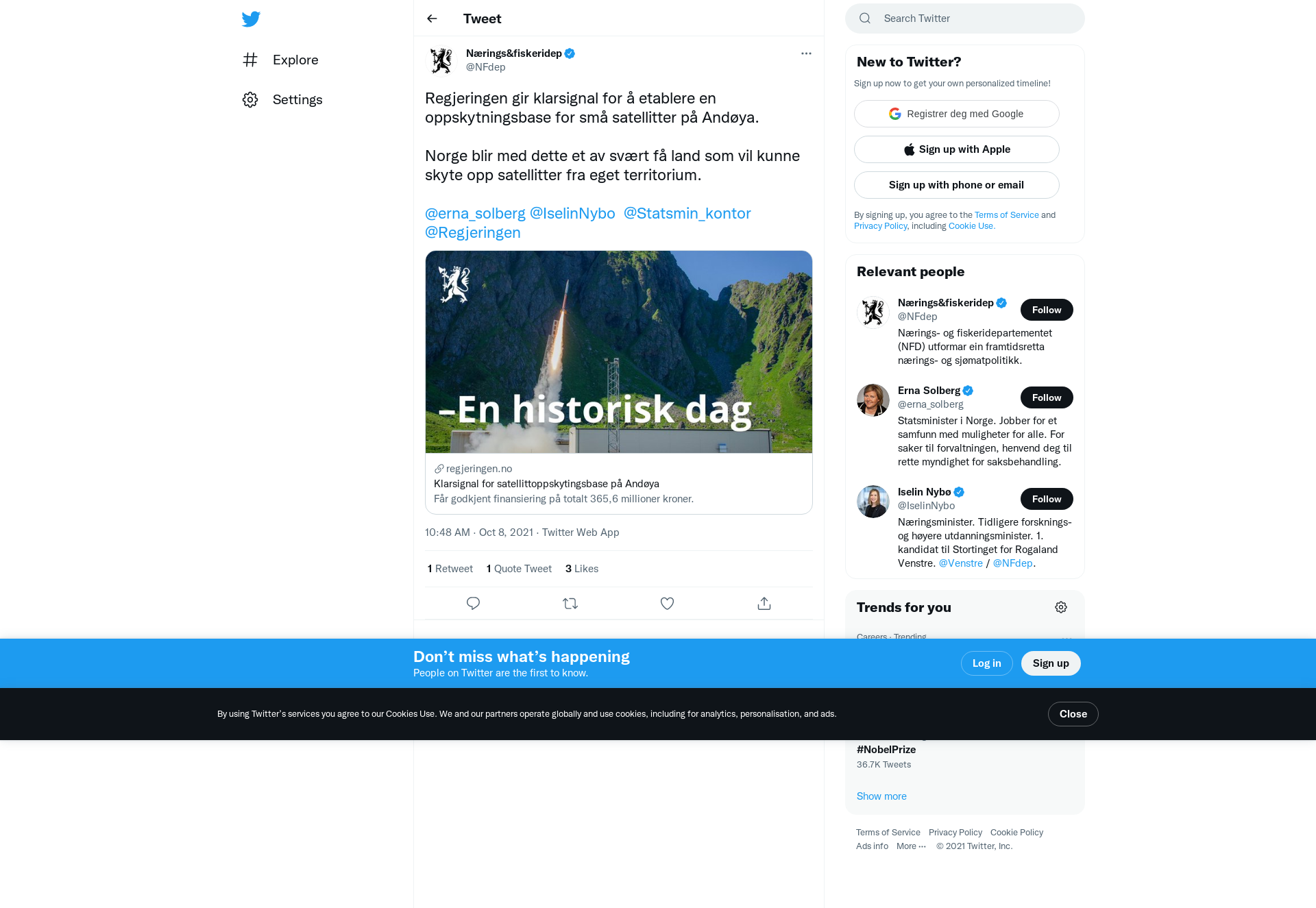 Norge blir med dette et av svært få land som vil kunne skyte opp satellitter fra eget territorium.