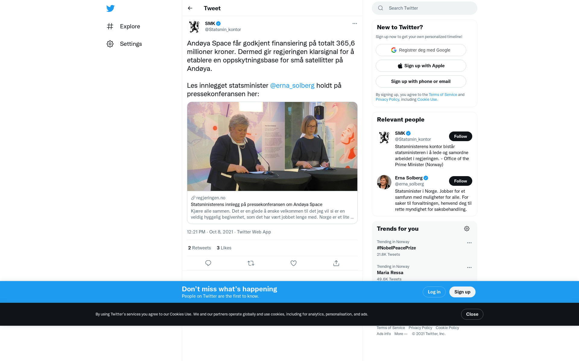 Statsministerens innlegg på pressekonferansen om Andøya Space