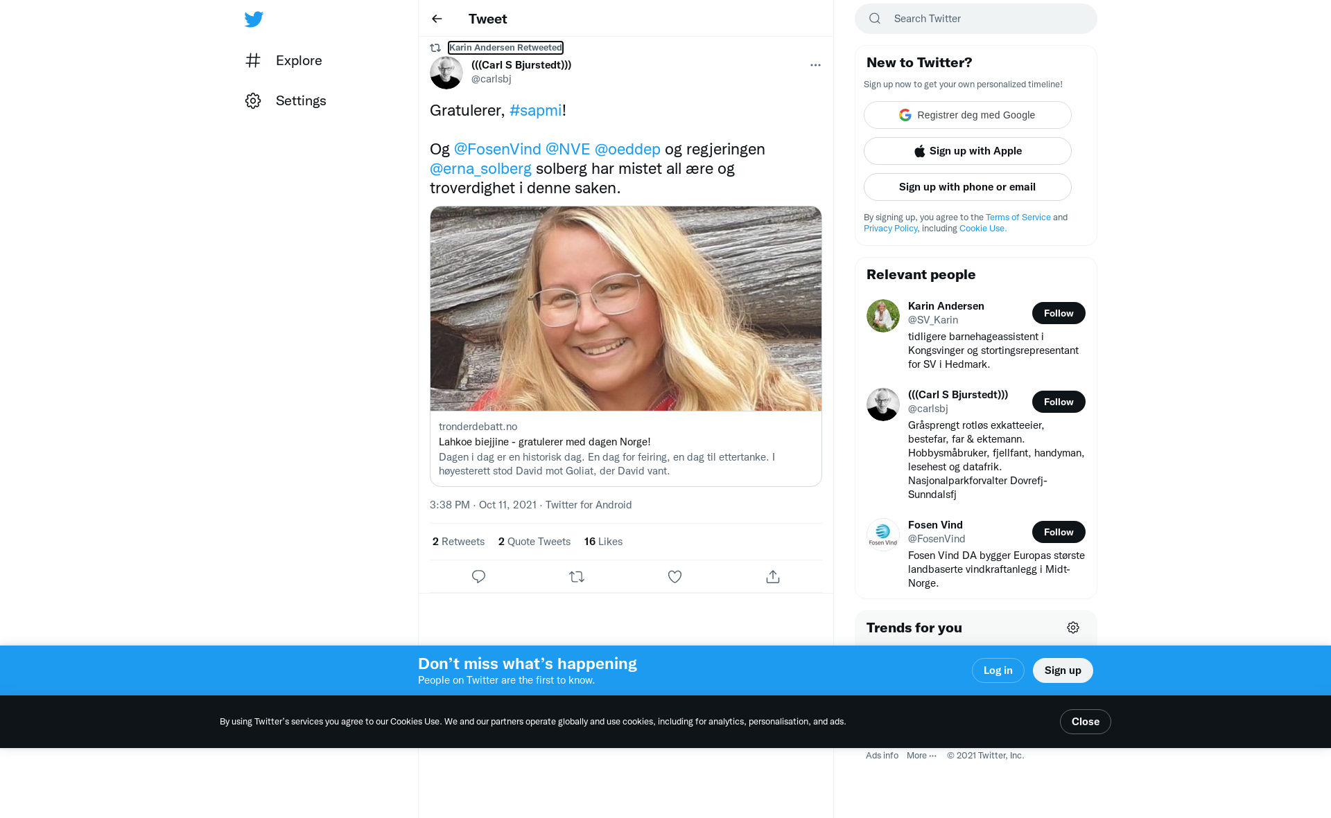 RT @carlsbj: Gratulerer, #sapmi! Og @FosenVind @NVE @oeddep og regjeringen @erna_solberg solberg har mistet all ære og troverdighet i denn…