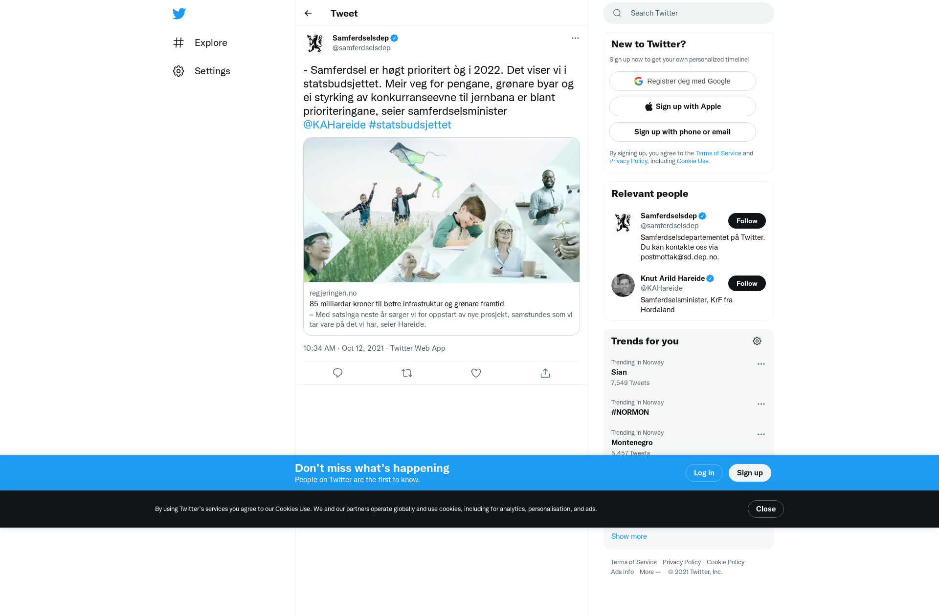 - Samferdsel er høgt prioritert òg i 2022. Det viser vi i statsbudsjettet. Meir veg for pengane, grønare byar og ei styrking av konkurranseevne til jernbana er blant prioriteringane, seier samferdselsminister