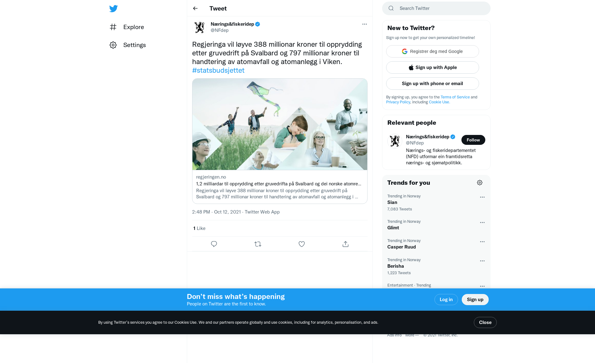 1,2 milliardar til opprydding etter gruvedrifta på Svalbard og dei norske atomreaktorane