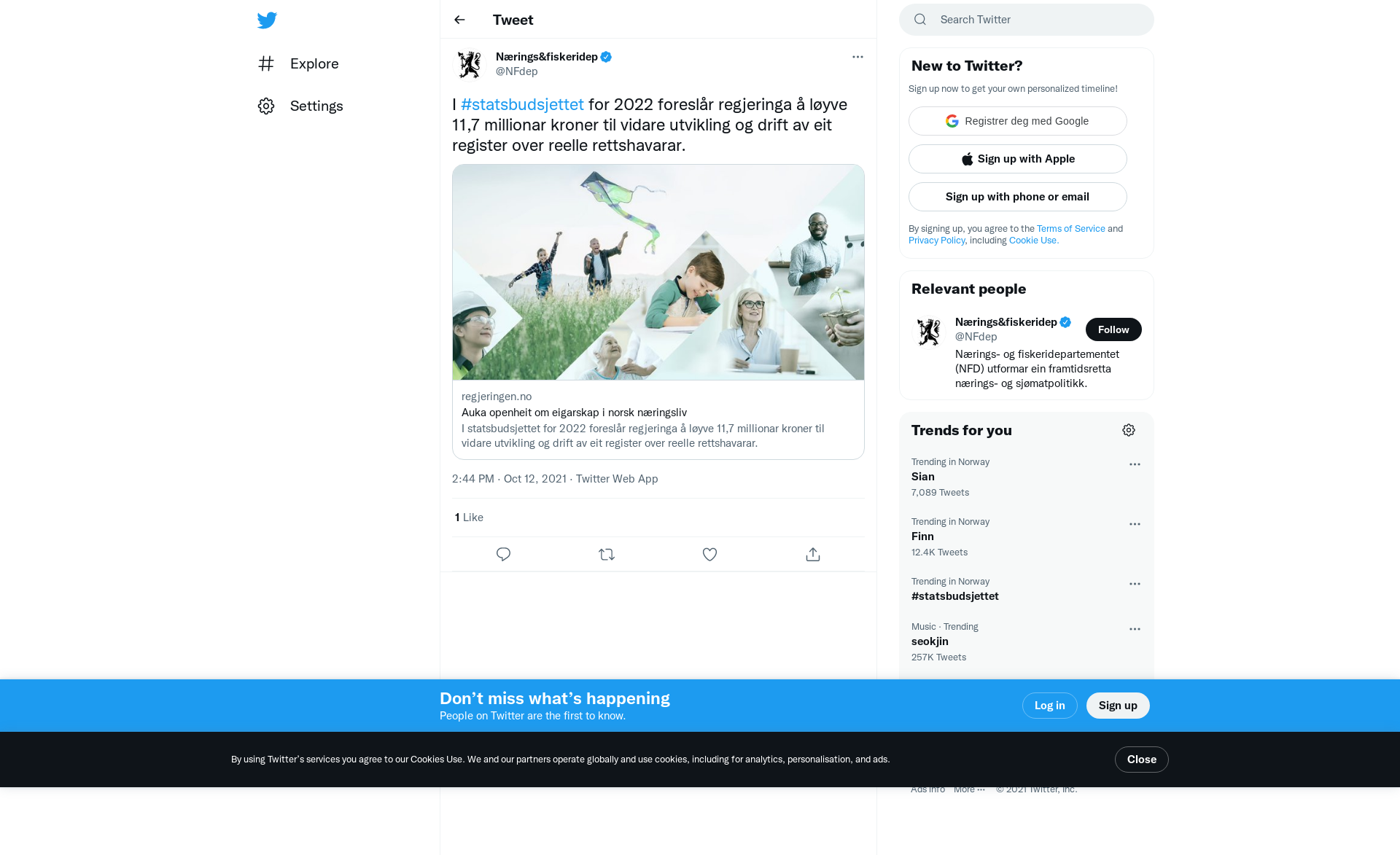 I #statsbudsjettet for 2022 foreslår regjeringa å løyve 11,7 millionar kroner til vidare utvikling og drift av eit register over reelle rettshavarar. https://t.co/5jiu81yvuD
