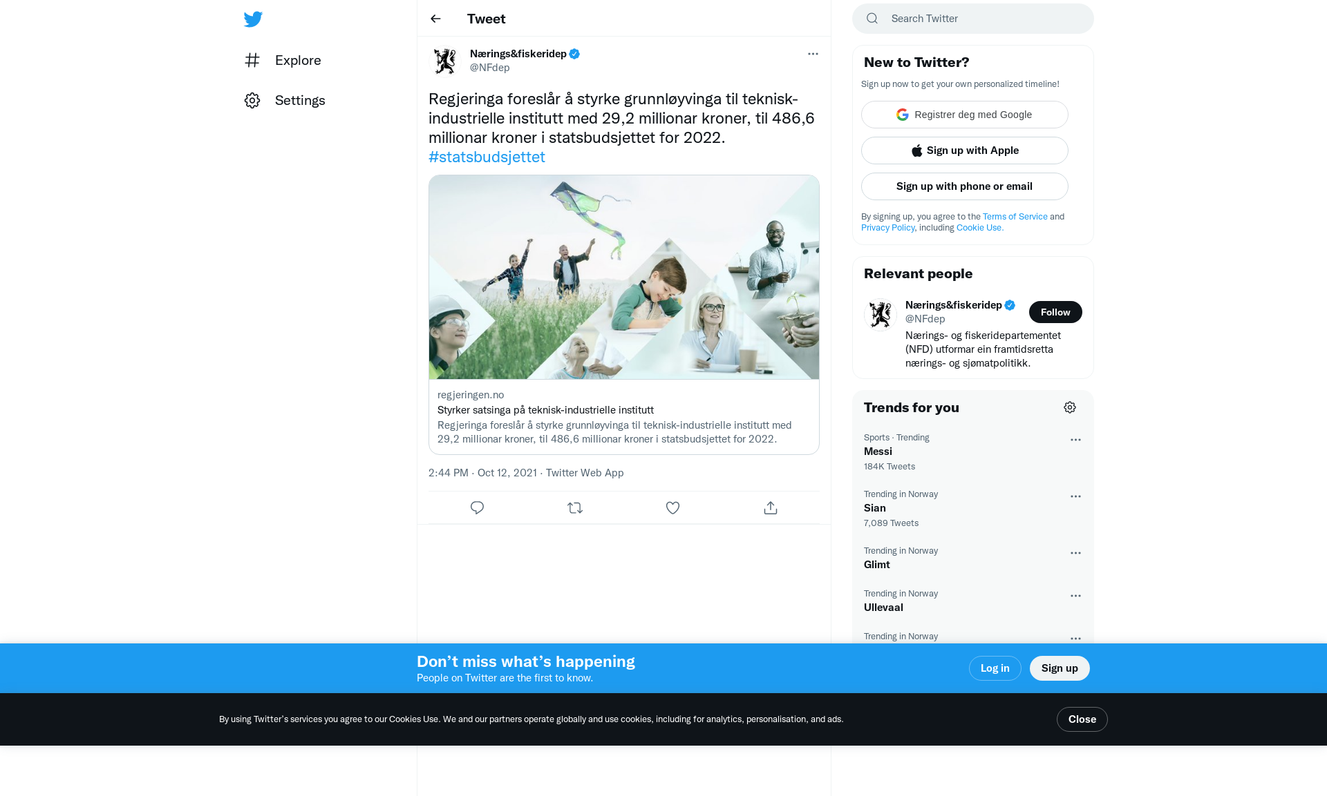 Regjeringa foreslår å styrke grunnløyvinga til teknisk-industrielle institutt med 29,2 millionar kroner, til 486,6 millionar kroner i statsbudsjettet for 2022. #statsbudsjettet
