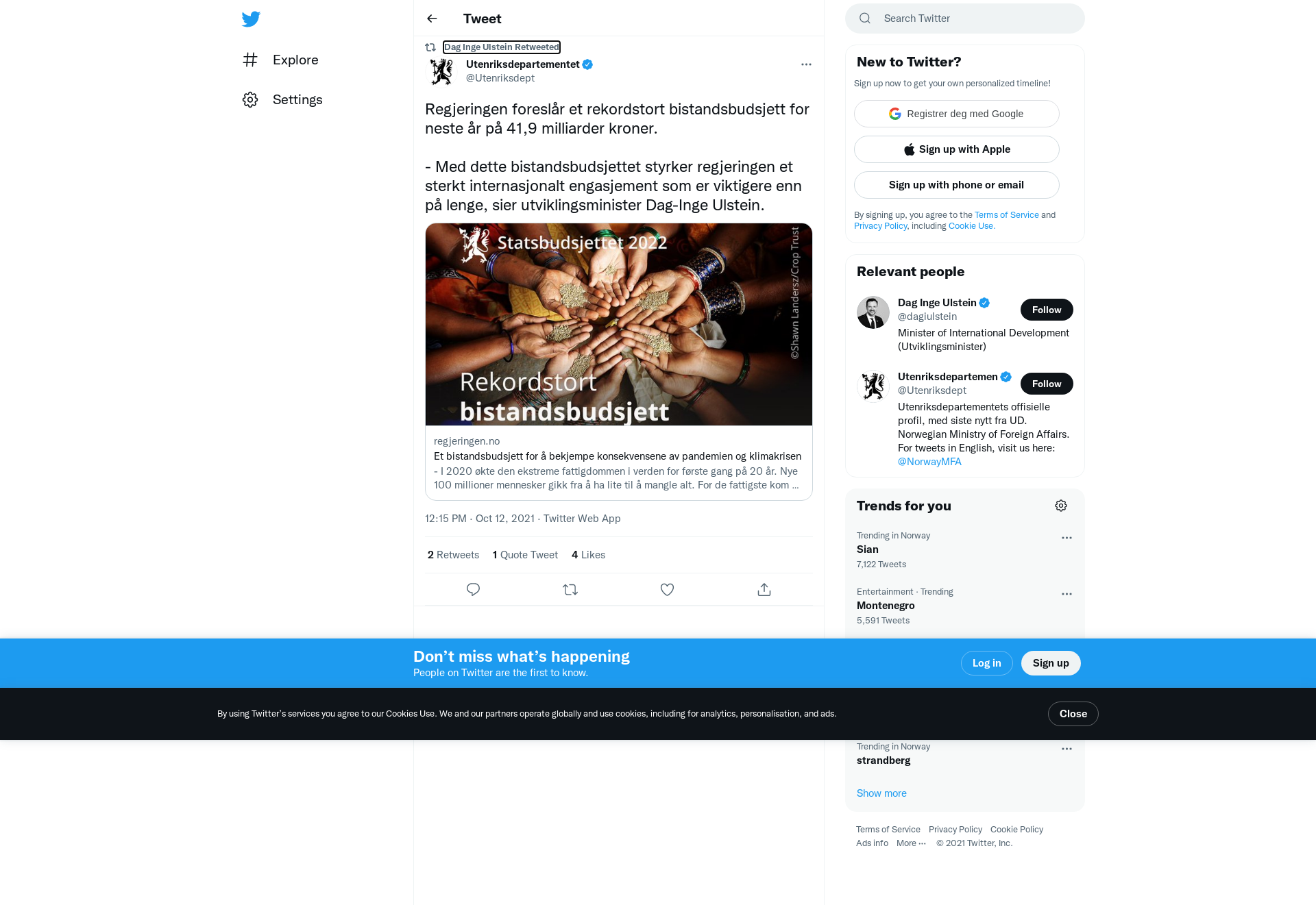 RT @Utenriksdept: Regjeringen foreslår et rekordstort bistandsbudsjett for neste år på 41,9 milliarder kroner. - Med dette bistandsbudsjet…