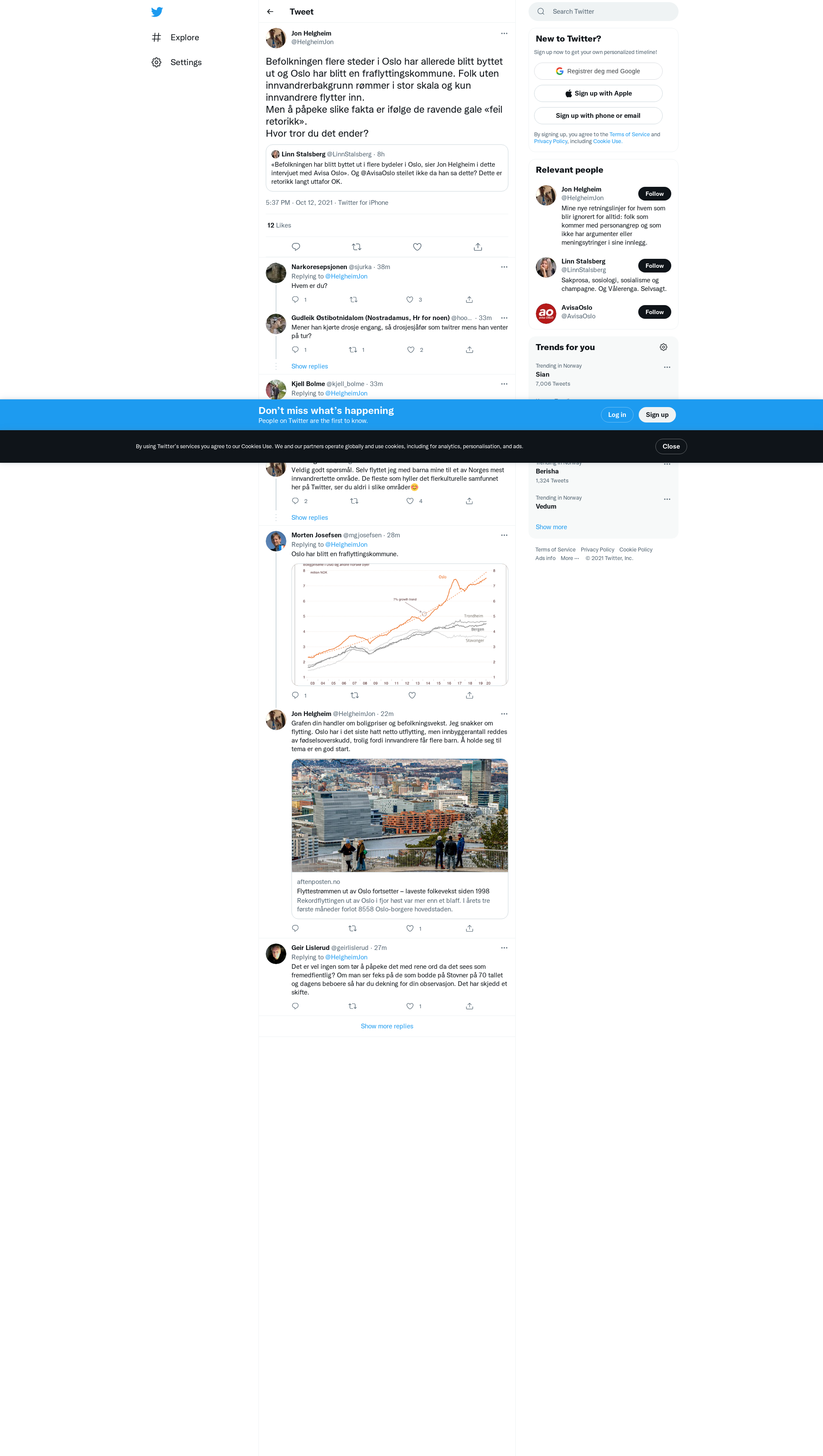 Befolkningen flere steder i Oslo har allerede blitt byttet ut og Oslo har blitt en fraflyttingskommune. Folk uten innvandrerbakgrunn rømmer i stor skala og kun innvandrere flytter inn.