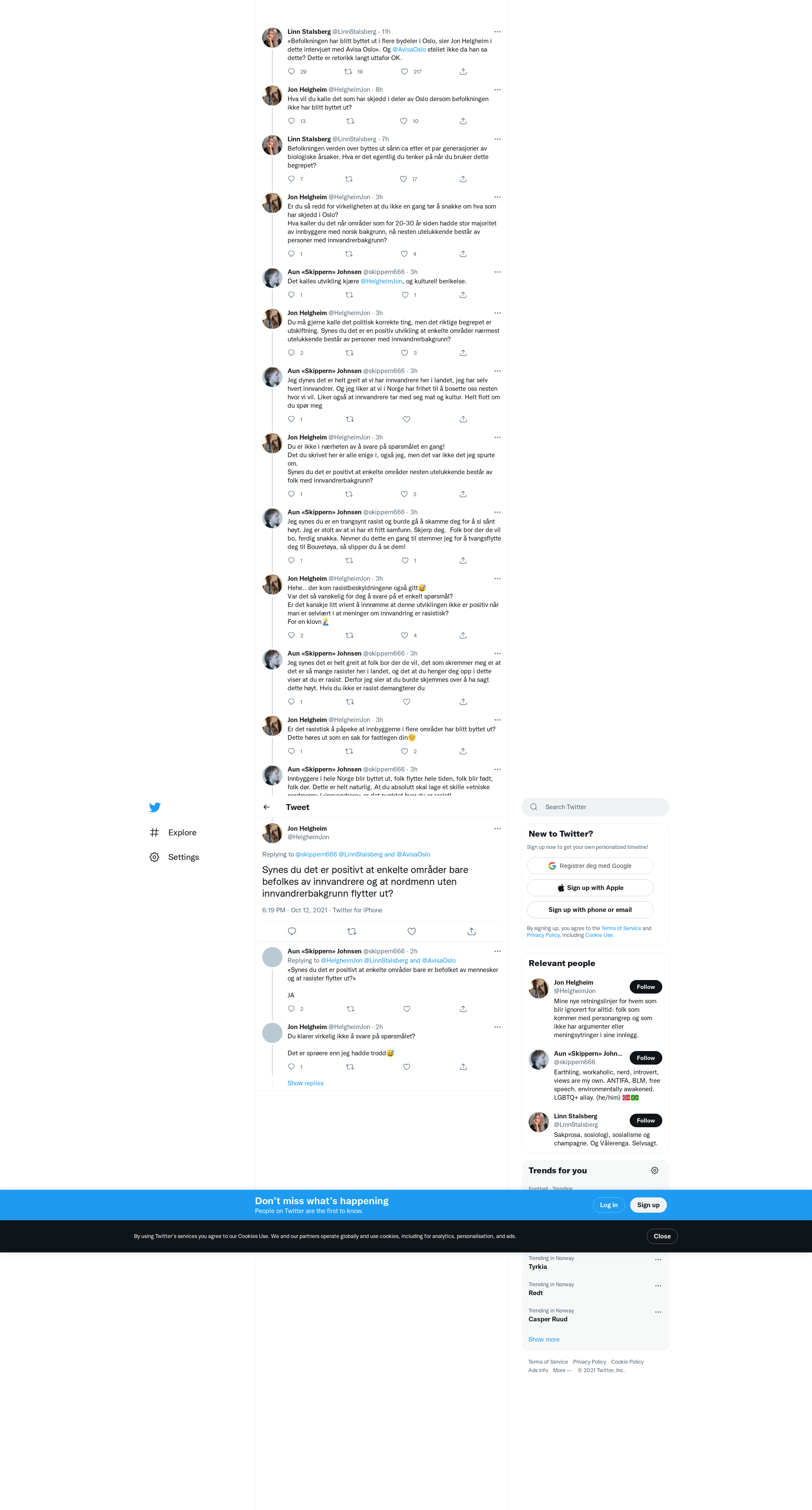 @skippern666 @LinnStalsberg @AvisaOslo Synes du det er positivt at enkelte områder bare befolkes av innvandrere og at nordmenn uten innvandrerbakgrunn flytter ut?
