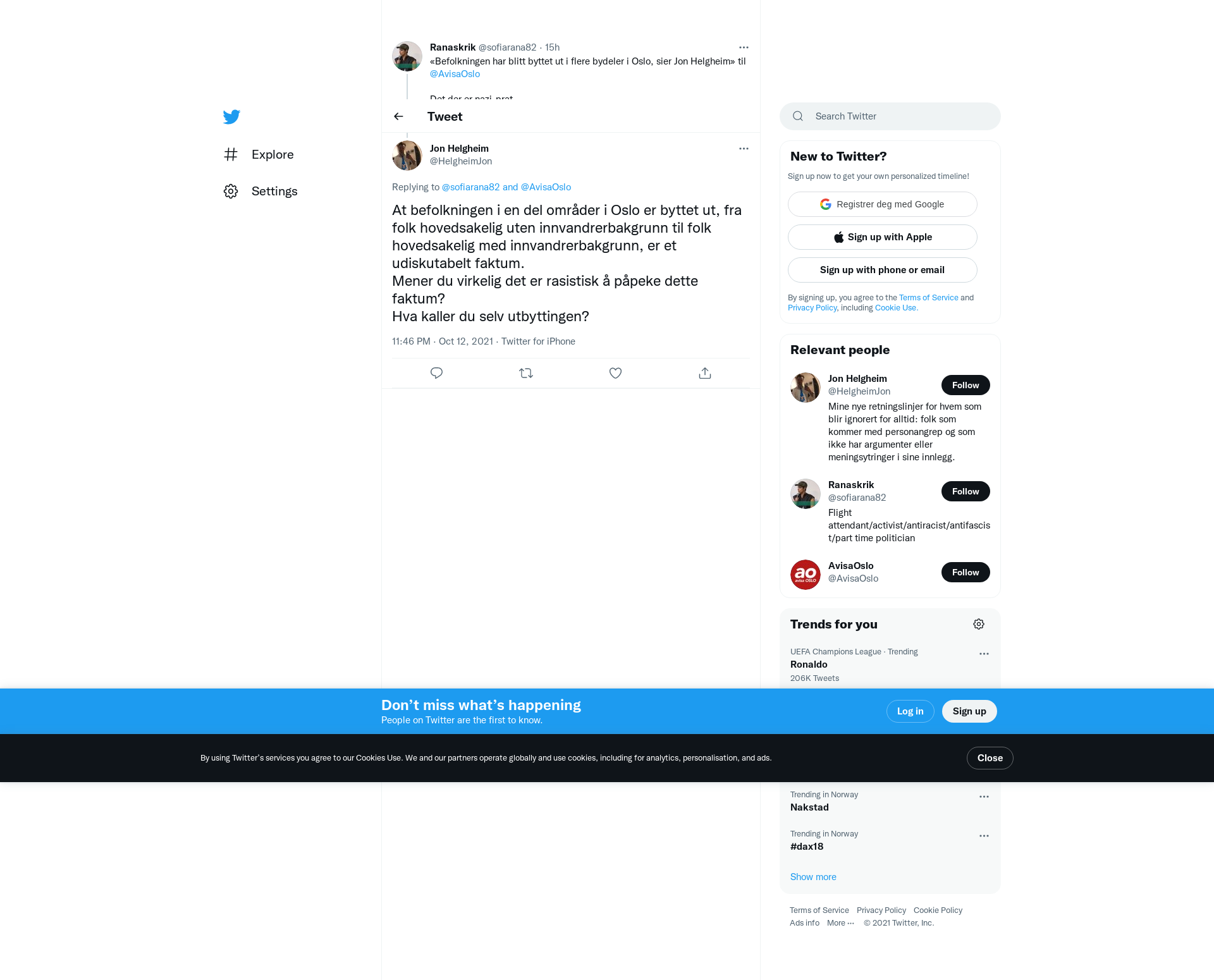 @sofiarana82 @AvisaOslo At befolkningen i en del områder i Oslo er byttet ut, fra folk hovedsakelig uten innvandrerbakgrunn til folk hovedsakelig med innvandrerbakgrunn, er et udiskutabelt faktum.
