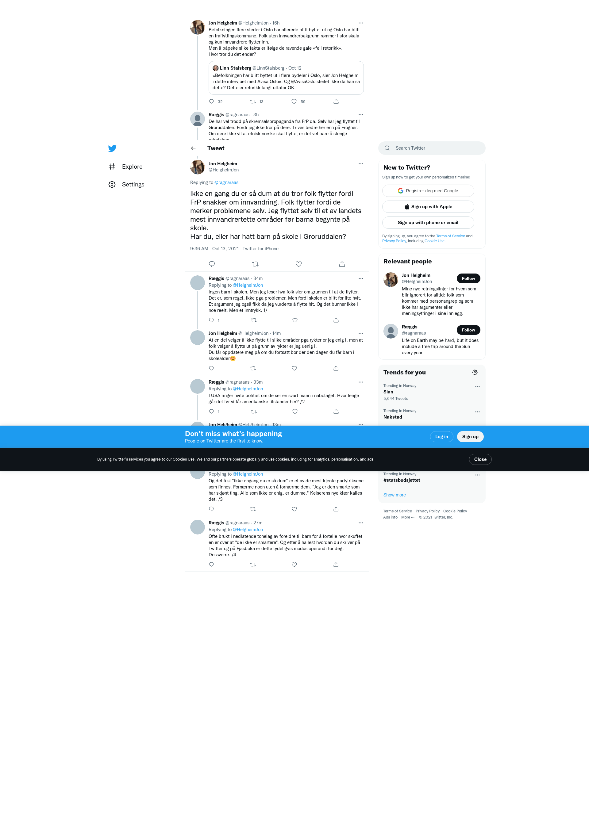 @ragnaraas Ikke en gang du er så dum at du tror folk flytter fordi FrP snakker om innvandring. Folk flytter fordi de merker problemene selv. Jeg flyttet selv til et av landets mest innvandrertette områder før barna begynte på skole.