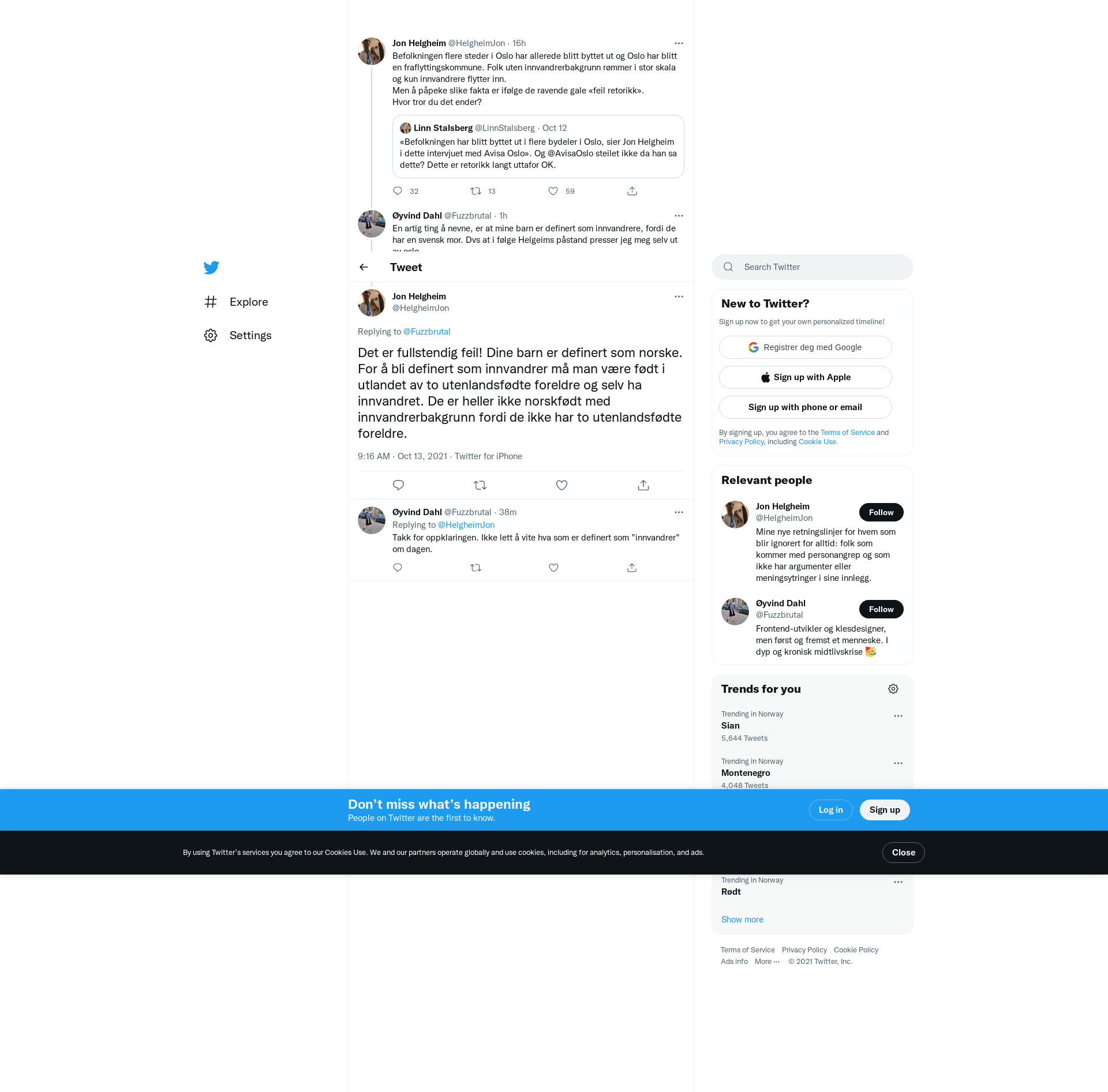 @Fuzzbrutal Det er fullstendig feil! Dine barn er definert som norske. For å bli definert som innvandrer må man være født i utlandet av to utenlandsfødte foreldre og selv ha innvandret. De er heller ikke norskfødt med innvandrerbakgrunn fordi de ikke har to utenlandsfødte foreldre.