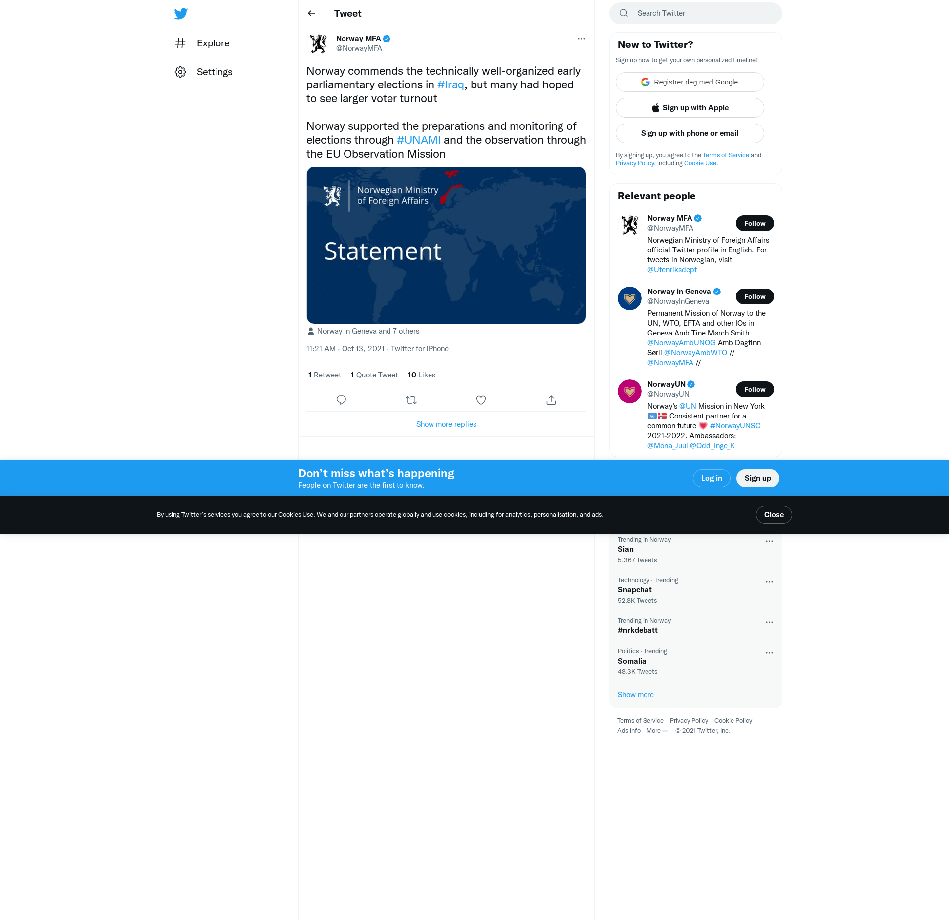 Norway supported the preparations and monitoring of elections through #UNAMI and the observation through the EU Observation Mission https://t.co/NvnqtTq2Ap
