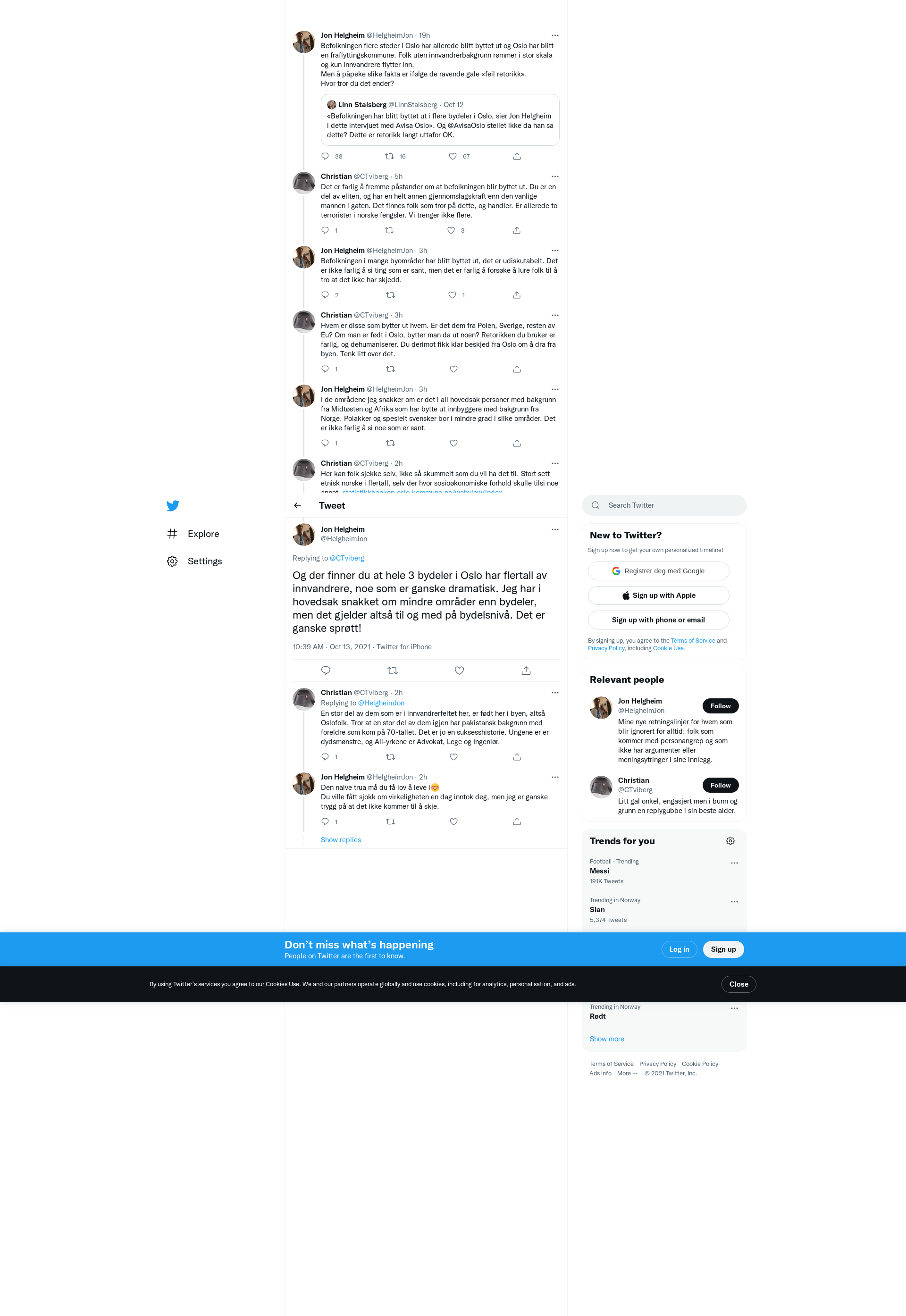 @CTviberg Og der finner du at hele 3 bydeler i Oslo har flertall av innvandrere, noe som er ganske dramatisk. Jeg har i hovedsak snakket om mindre områder enn bydeler, men det gjelder altså til og med på bydelsnivå. Det er ganske sprøtt!