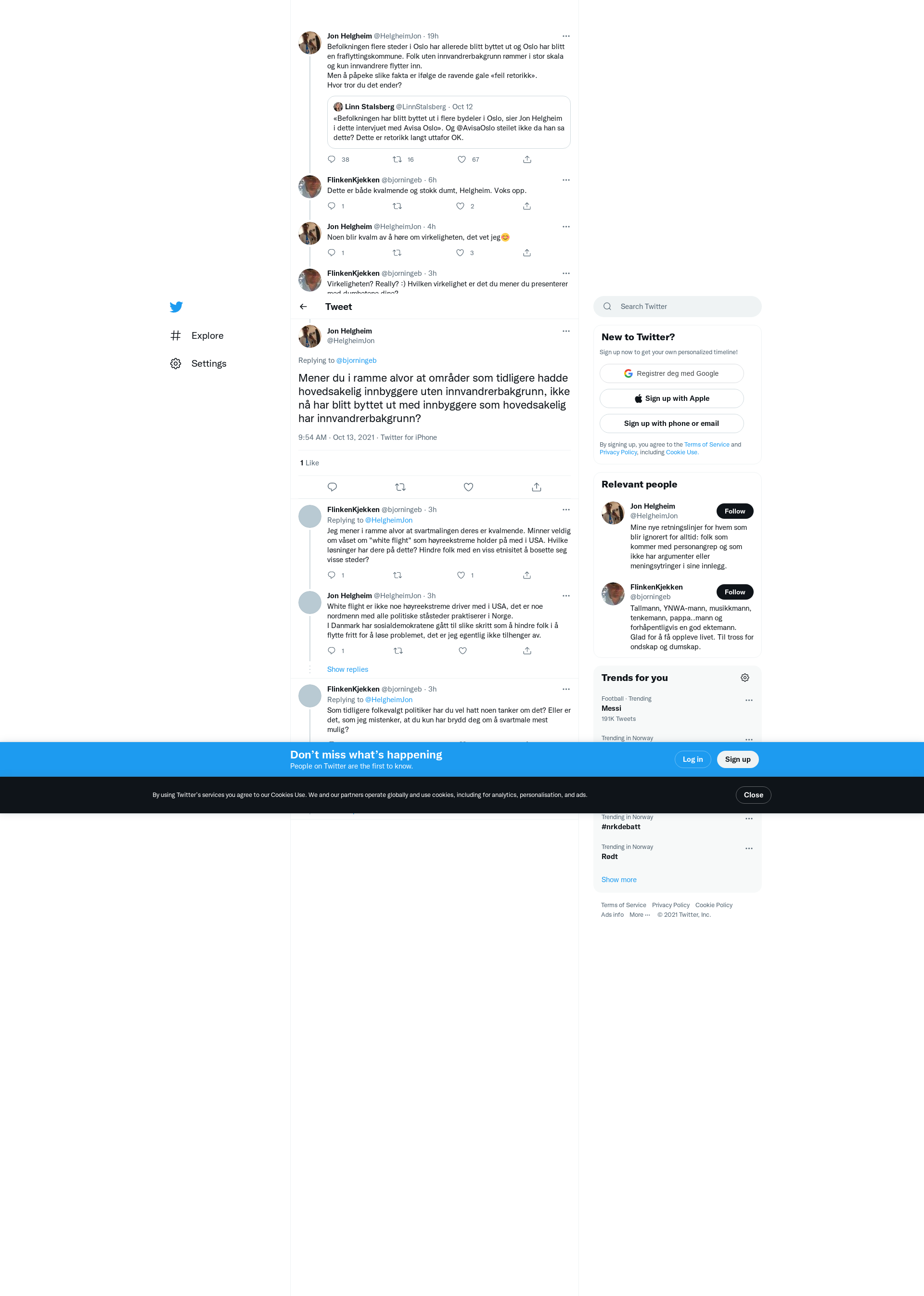 @bjorningeb Mener du i ramme alvor at områder som tidligere hadde hovedsakelig innbyggere uten innvandrerbakgrunn, ikke nå har blitt byttet ut med innbyggere som hovedsakelig har innvandrerbakgrunn?