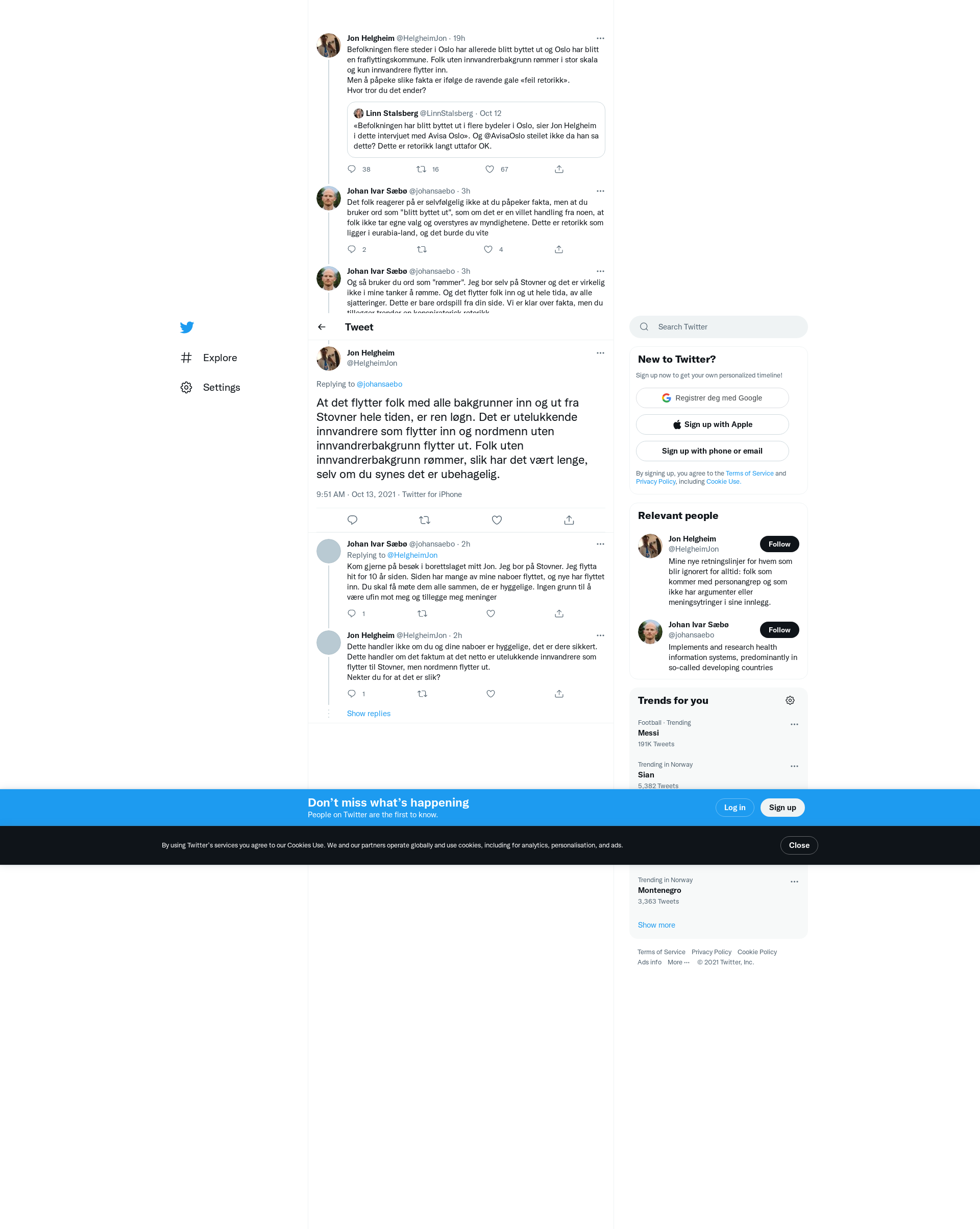 @johansaebo At det flytter folk med alle bakgrunner inn og ut fra Stovner hele tiden, er ren løgn. Det er utelukkende innvandrere som flytter inn og nordmenn uten innvandrerbakgrunn flytter ut. Folk uten innvandrerbakgrunn rømmer, slik har det vært lenge, selv om du synes det er ubehagelig.
