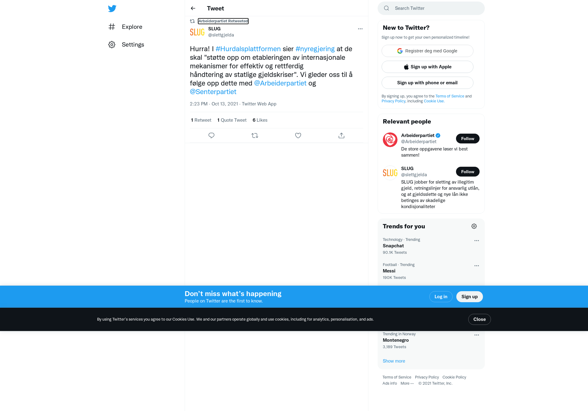 RT @slettgjelda: Hurra! I #Hurdalsplattformen sier #nyregjering at de skal "støtte opp om etableringen av internasjonale mekanismer for effektiv og rettferdig